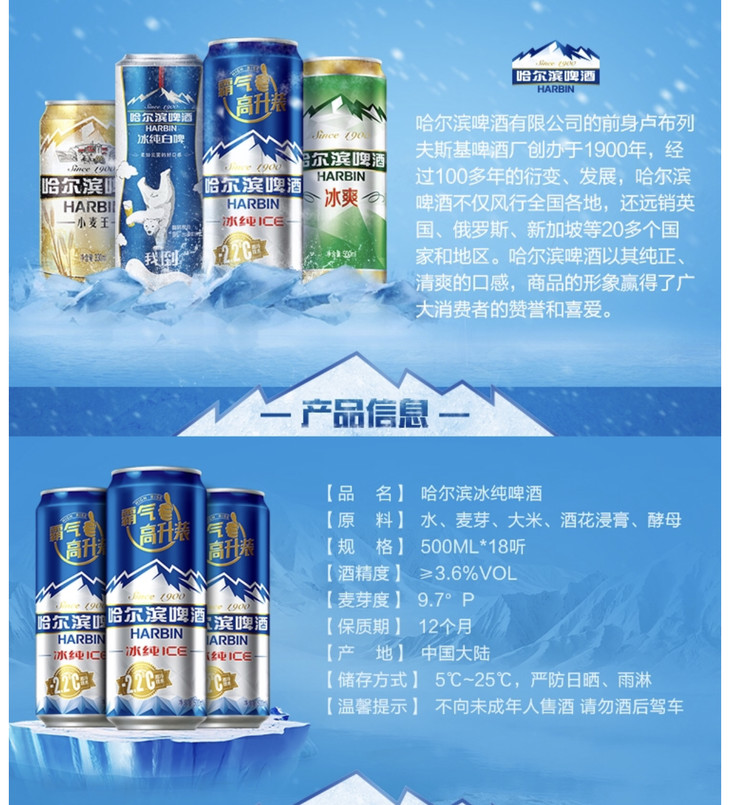 哈尔滨冰纯啤酒500ml清爽口感夏日畅饮必备