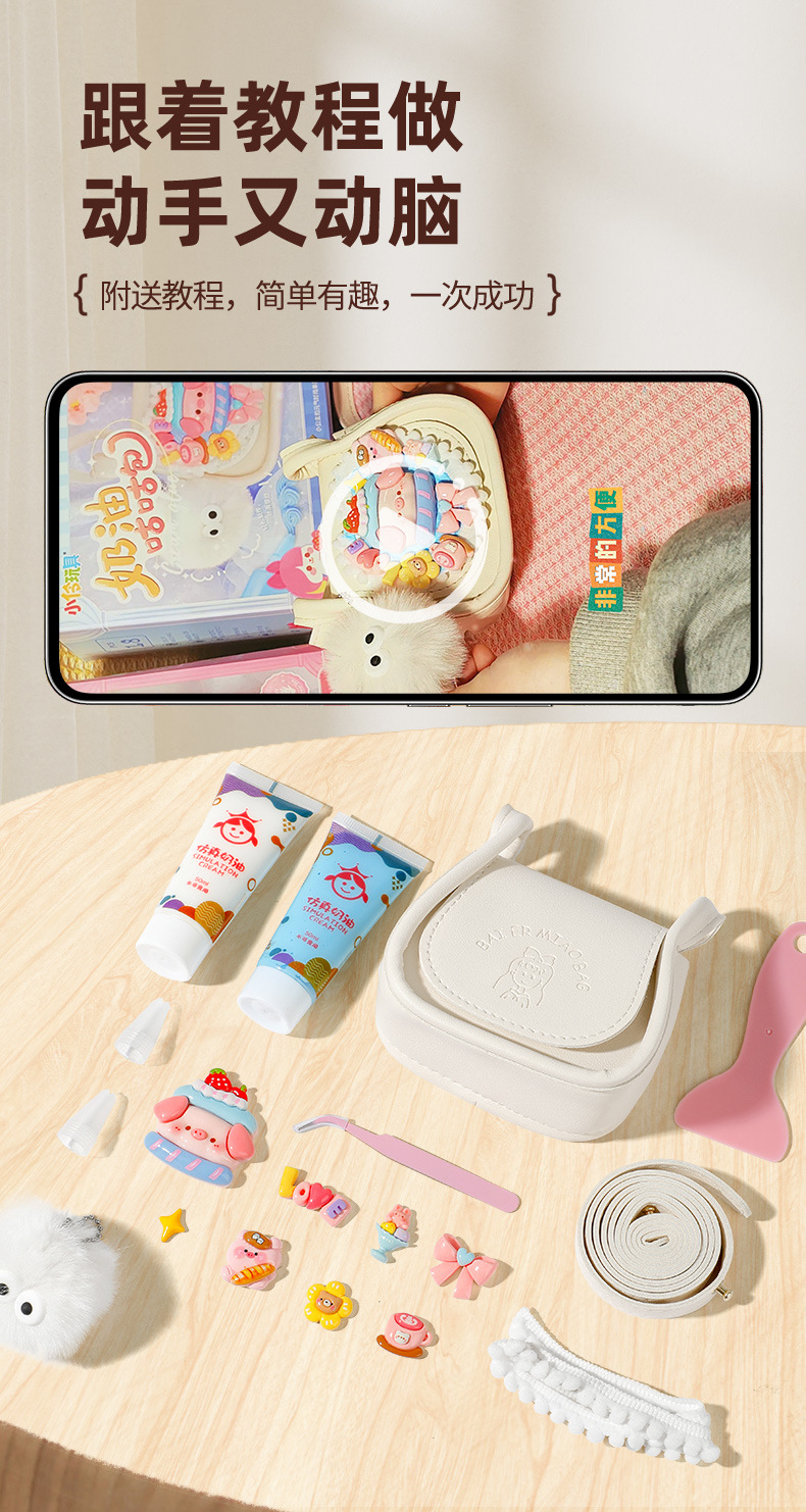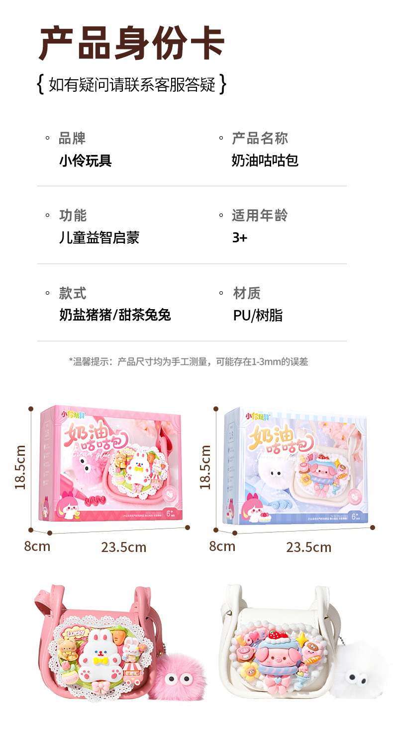 【百搭小可爱挎包】小伶玩具奶呼呼的咕卡公主包 DIY卡通包包制作材料包 可爱猪猪斜挎甜甜圈