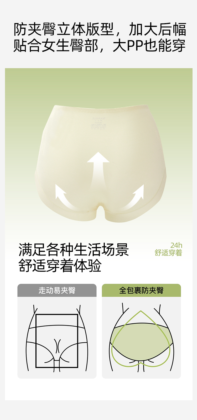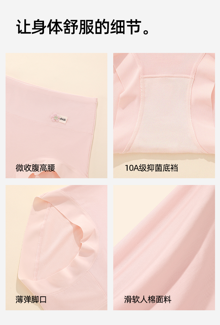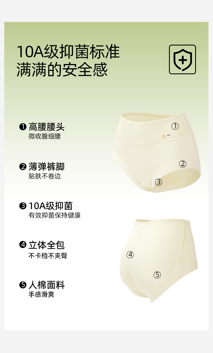 【3条装】熳洁儿 10A抑菌高腰人棉女士内裤微收腹显瘦包臀25262118