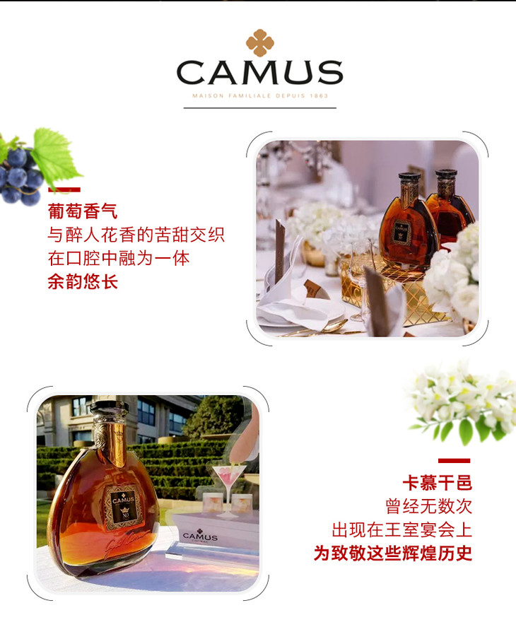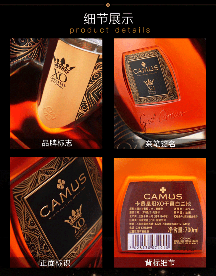 法国进口卡慕洋酒皇冠XO干邑白兰地700ml*1瓶/2瓶