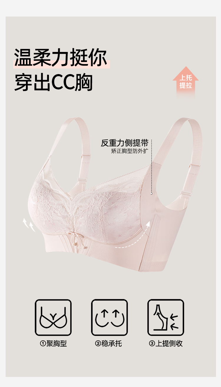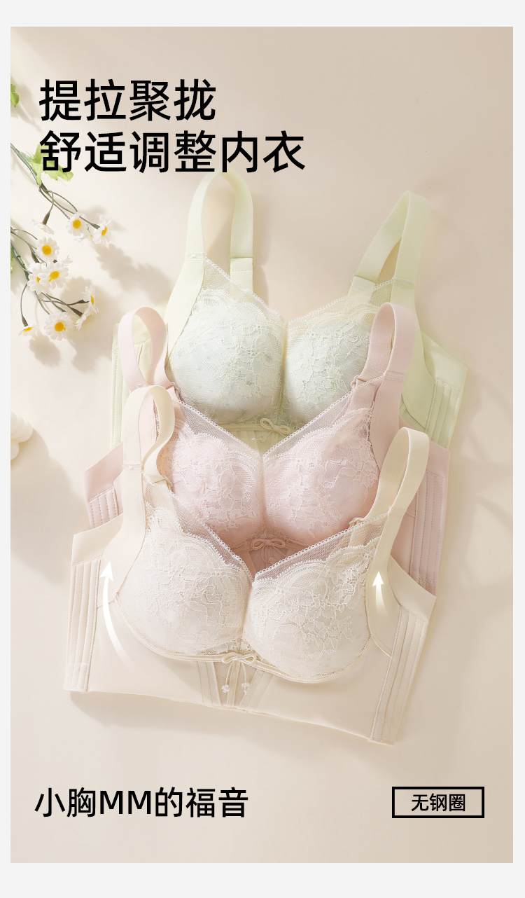 熳洁儿 调整提拉小胸聚拢文胸柔软轻乳棉力挺中厚杯蕾丝内衣26261511