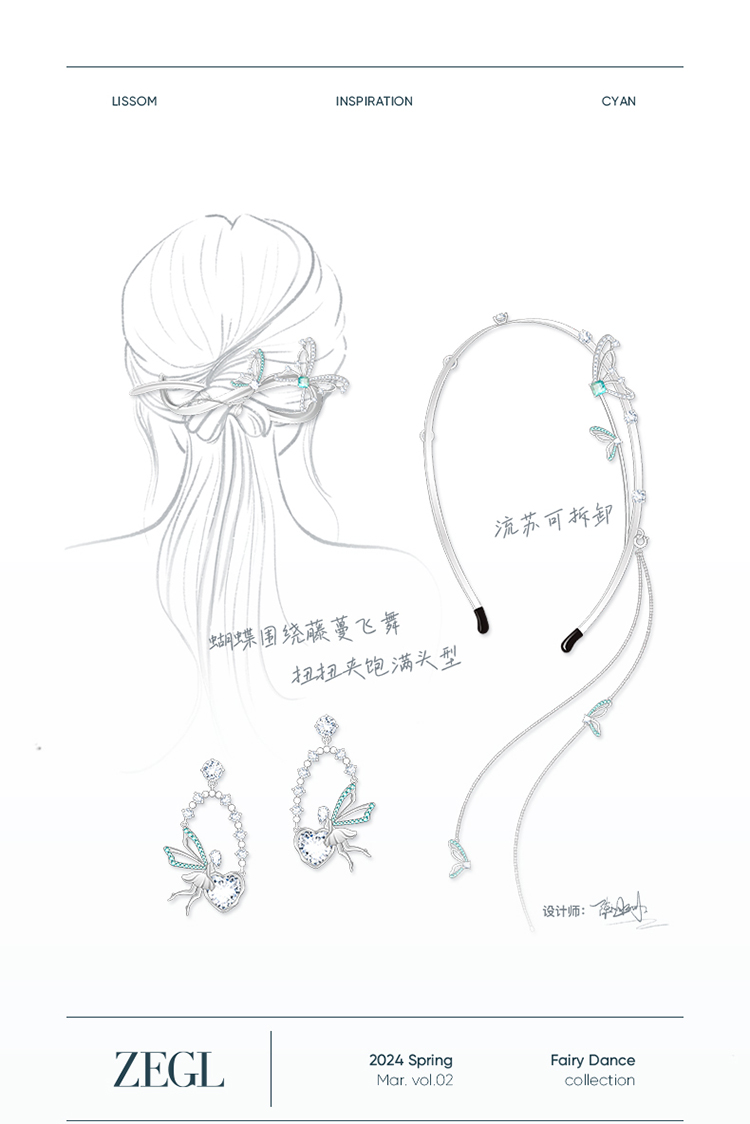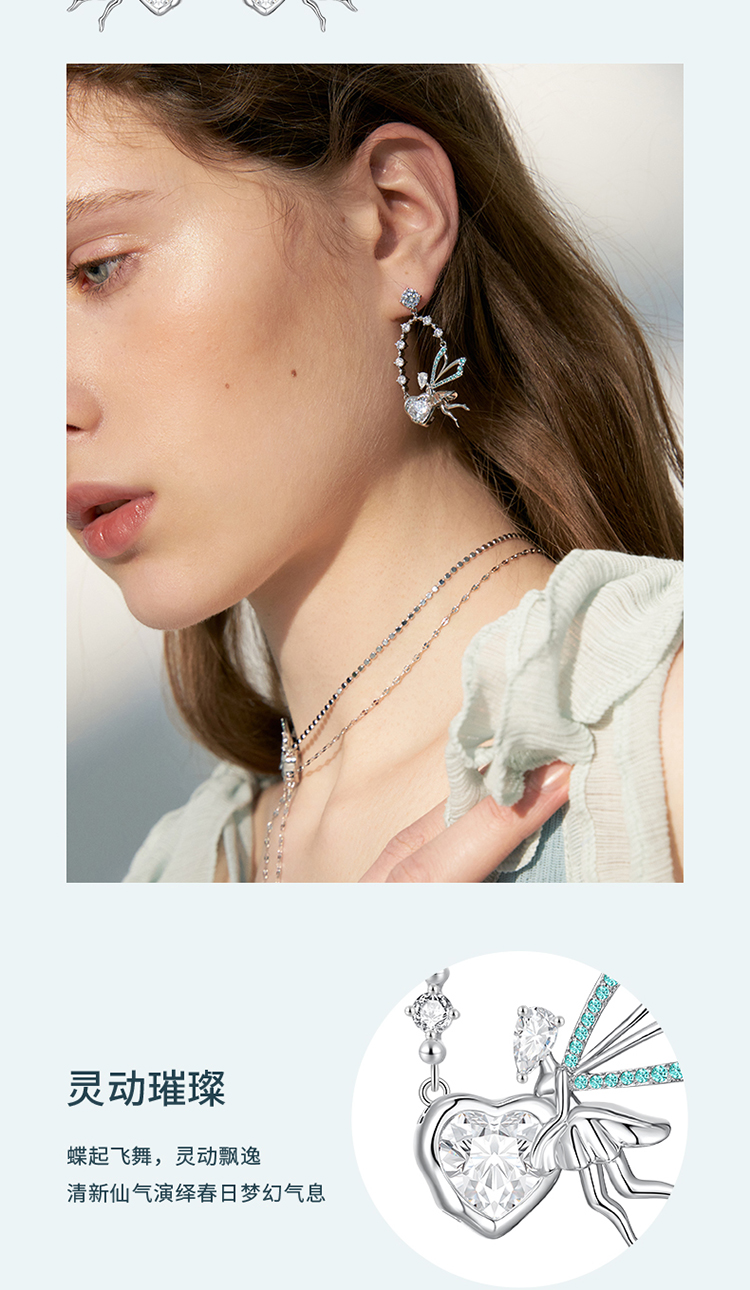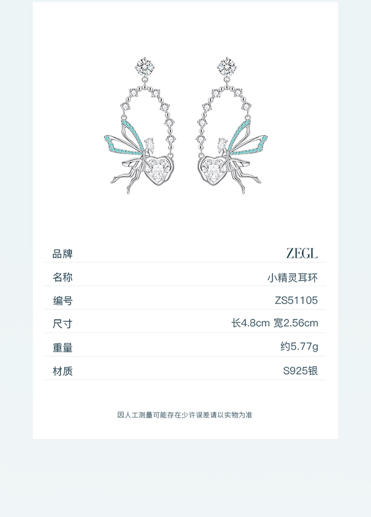 ZEGL设计师精灵之舞系列爱心蝴蝶耳环女2024新款耳钉925银针耳饰
