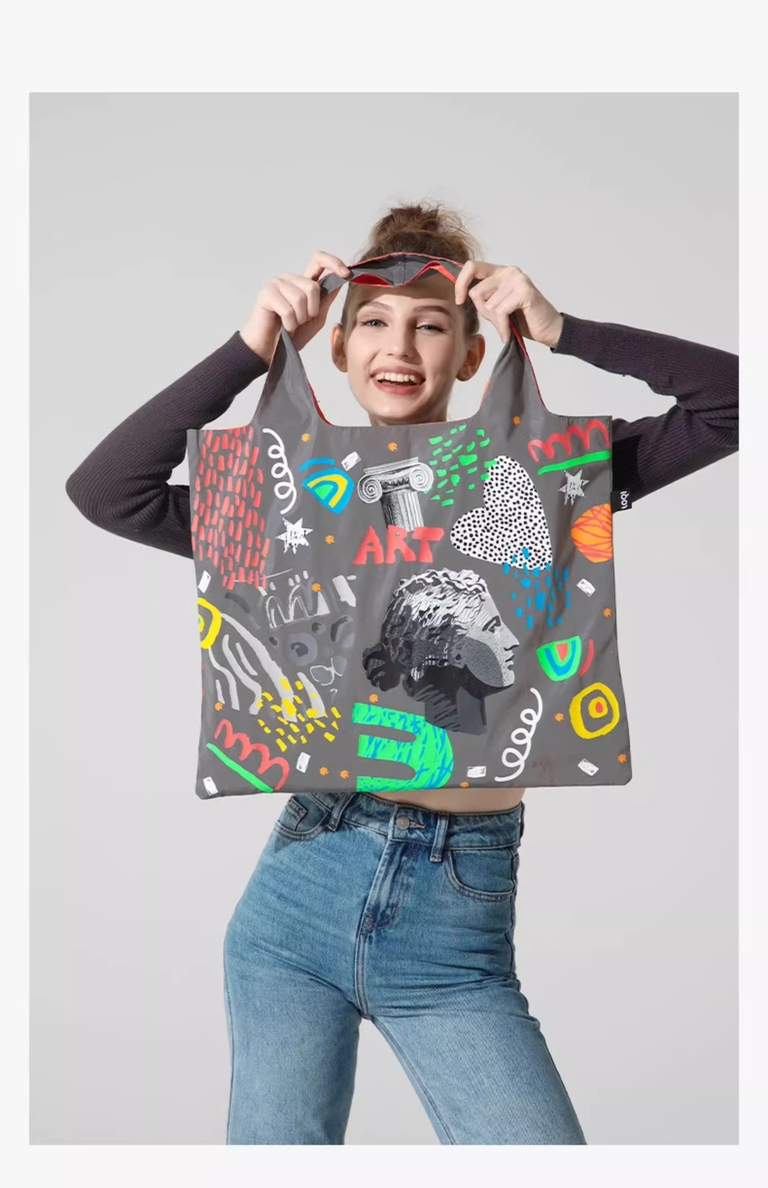 德国LOQI 反光系列 时尚艺术环保袋 轻便折叠安全时尚防泼水抽绳收纳
