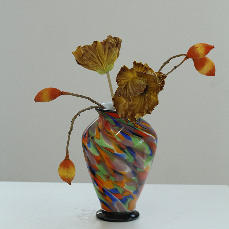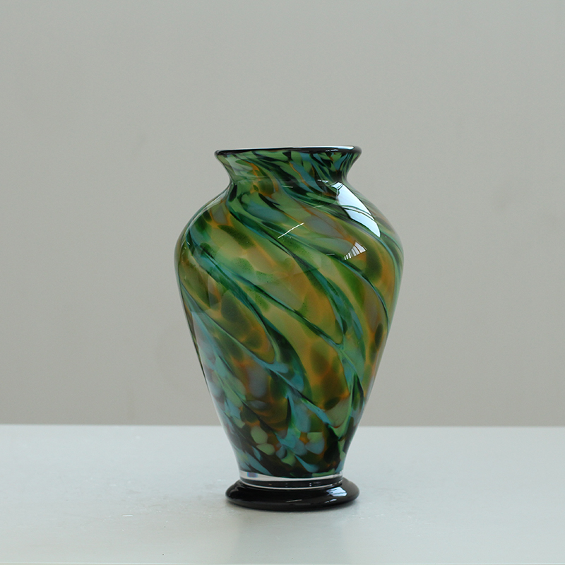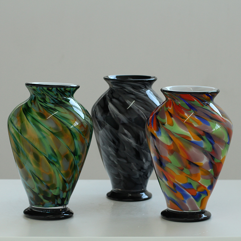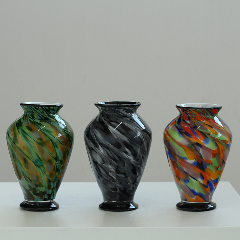现代简约绿色敞口渐变磁粉玻璃花瓶电视柜餐桌鲜花百合中古风花瓶