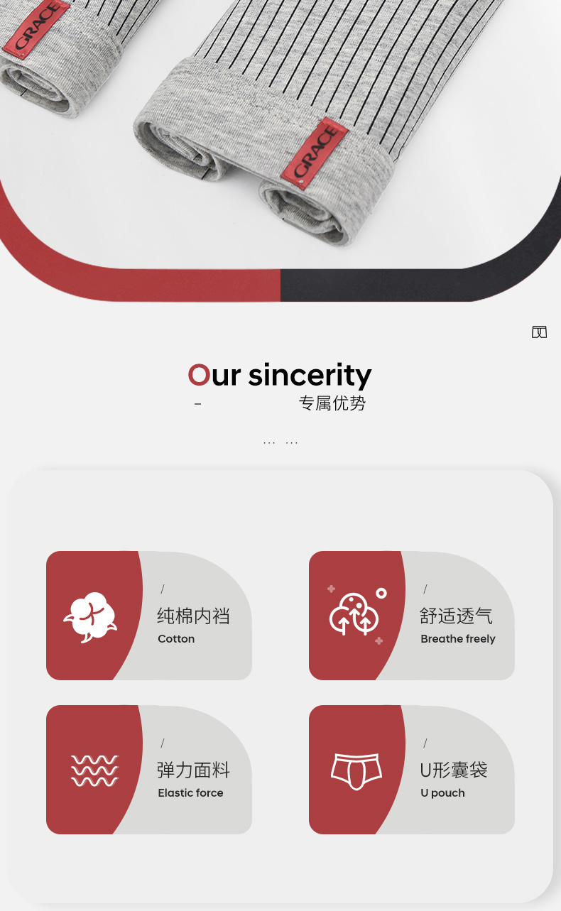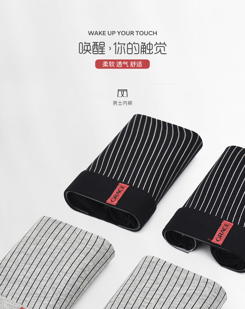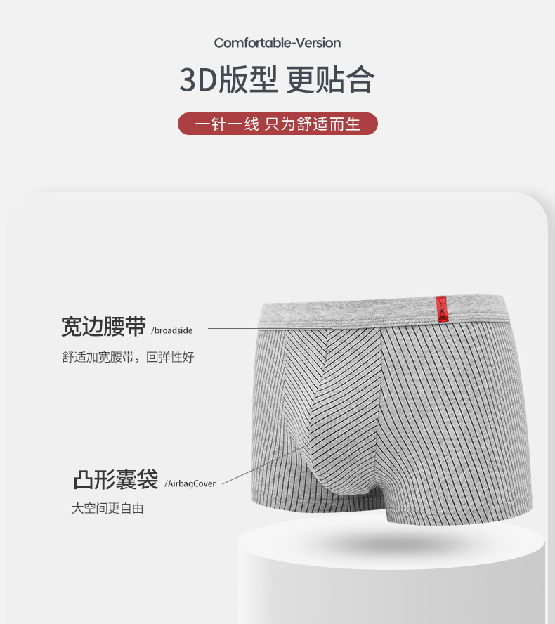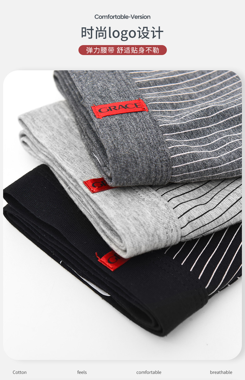 洁丽雅中腰纯棉男士内裤条纹款运动休闲男生平角裤头裤衩内裤男
