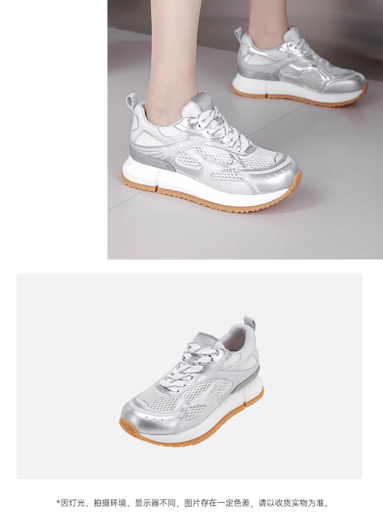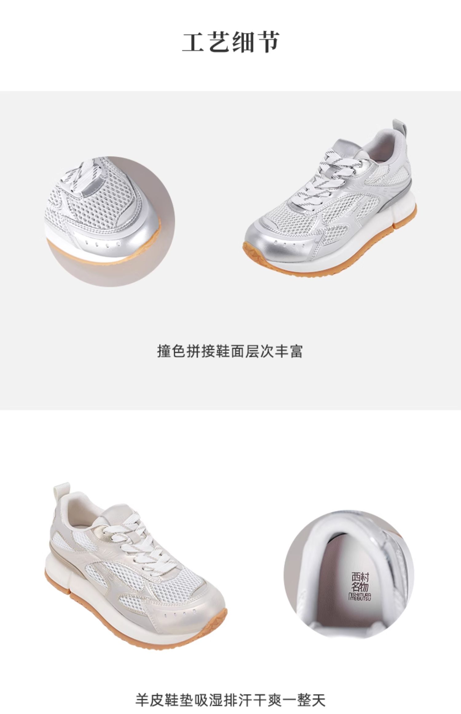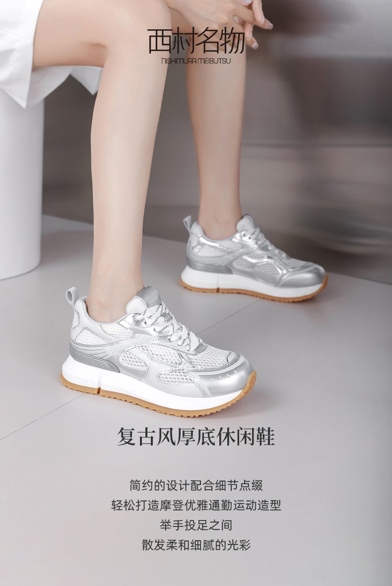 西村名物2024夏季新款网面透气镂空银色厚底增高运动休闲鞋网鞋女T24CM38421