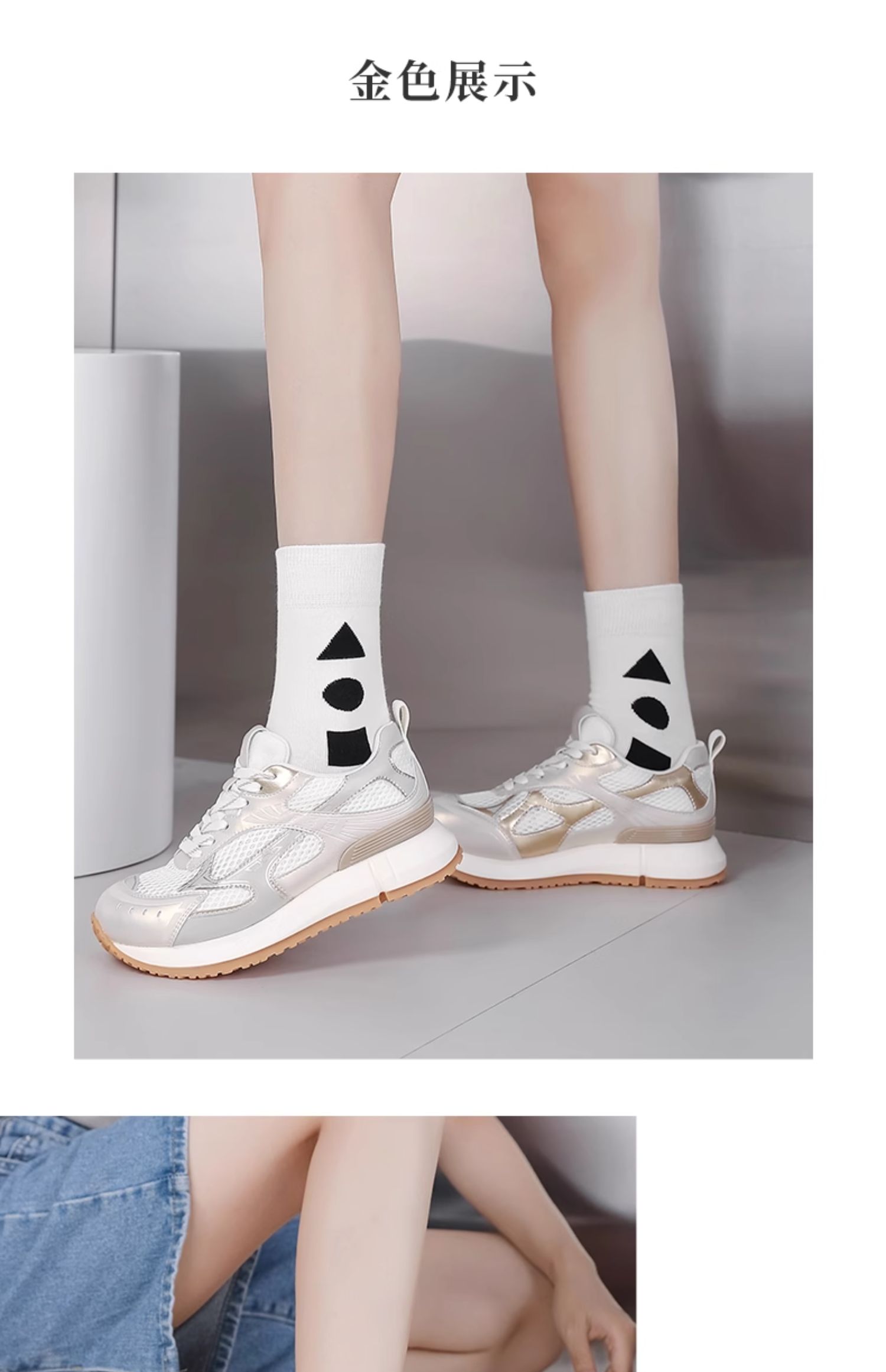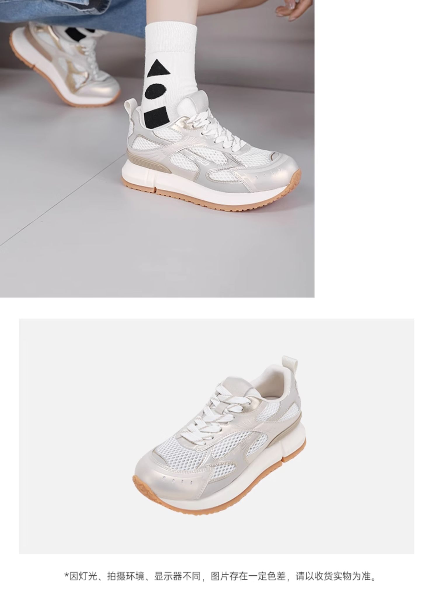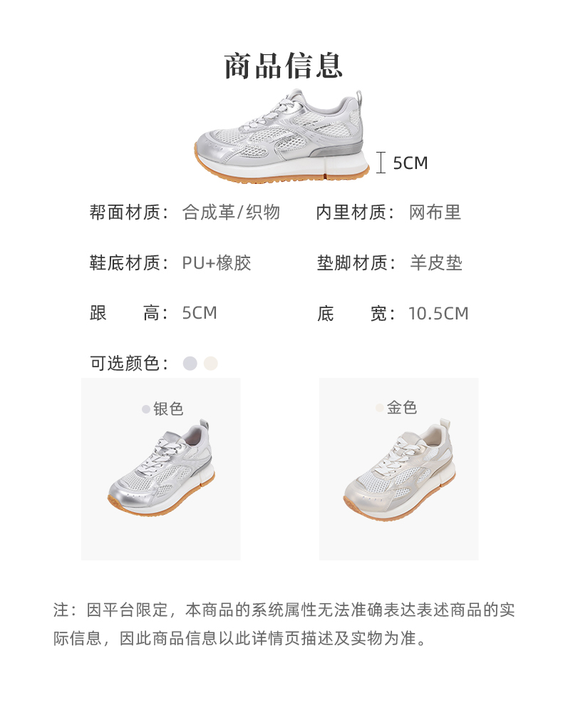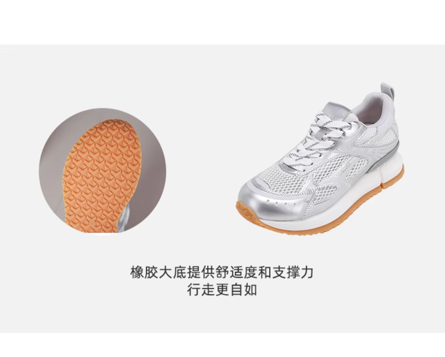 西村名物2024夏季新款网面透气镂空银色厚底增高运动休闲鞋网鞋女T24CM38421