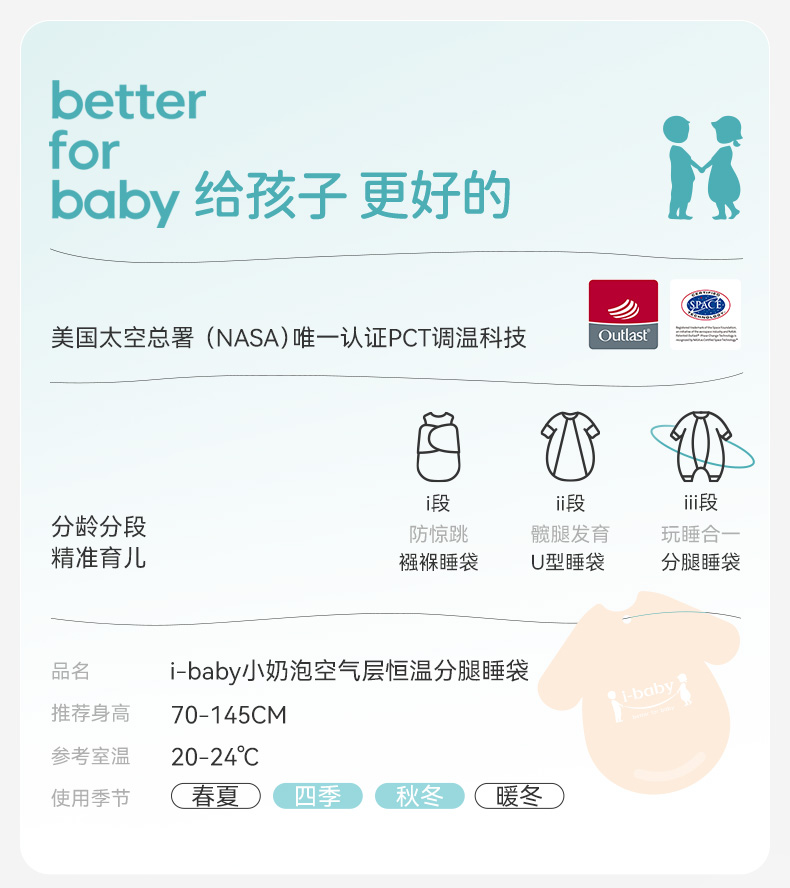 【感恩159元秒杀】i-baby小奶泡恒温空气层分腿睡袋10AA08237036(12.1-12.31实付399赠送i-baby手拎包)