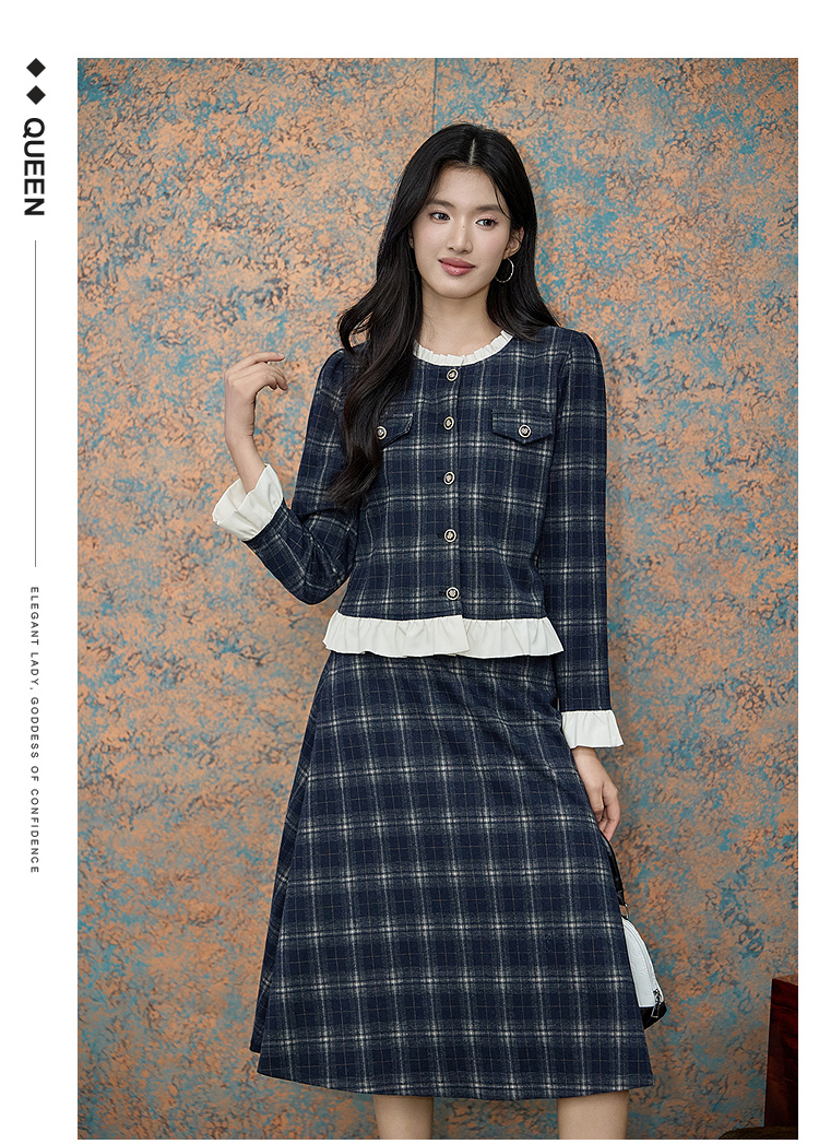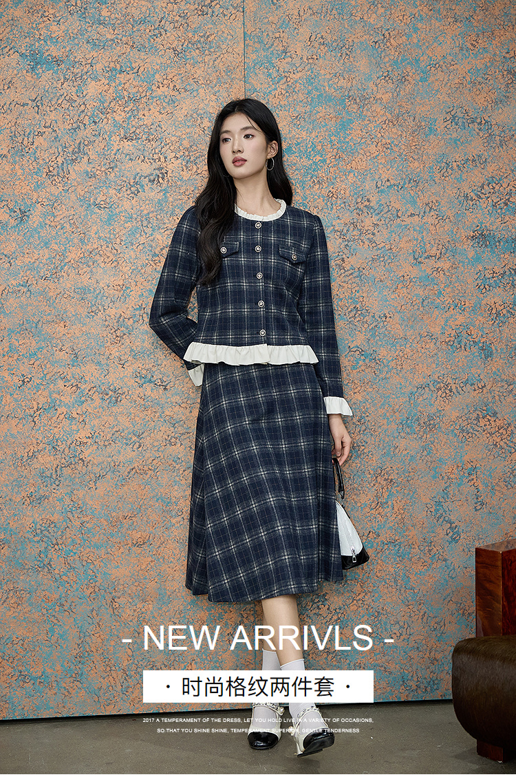 【降价】奢姿大码女装2025冬季减龄格纹拼接学院风两件套胖妹妹时尚套装9954953727