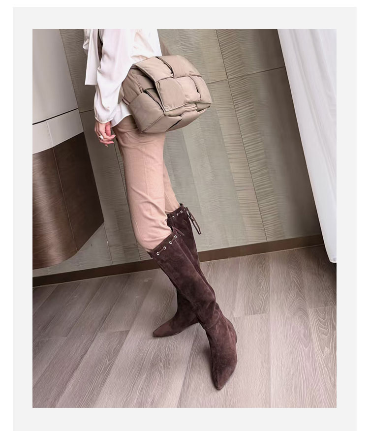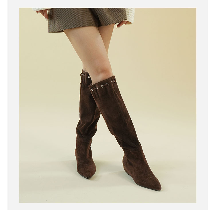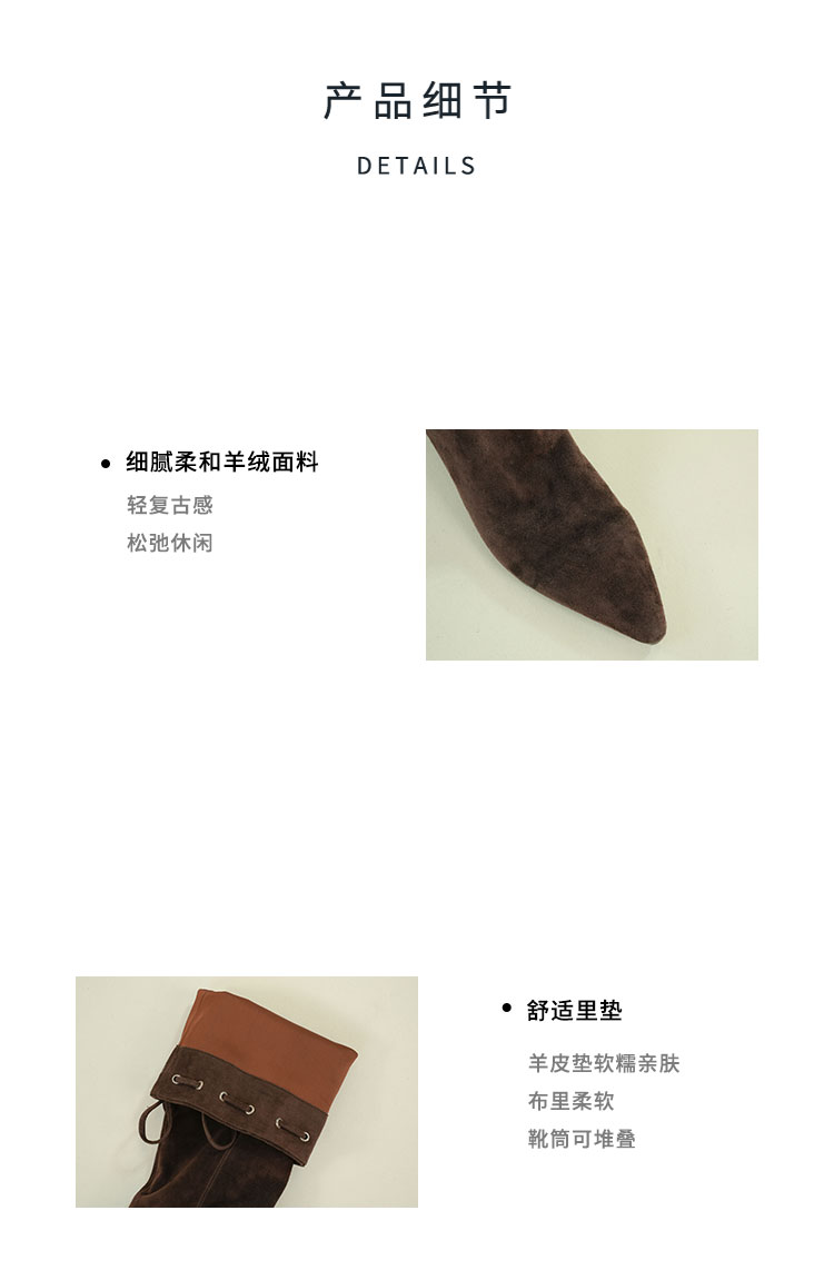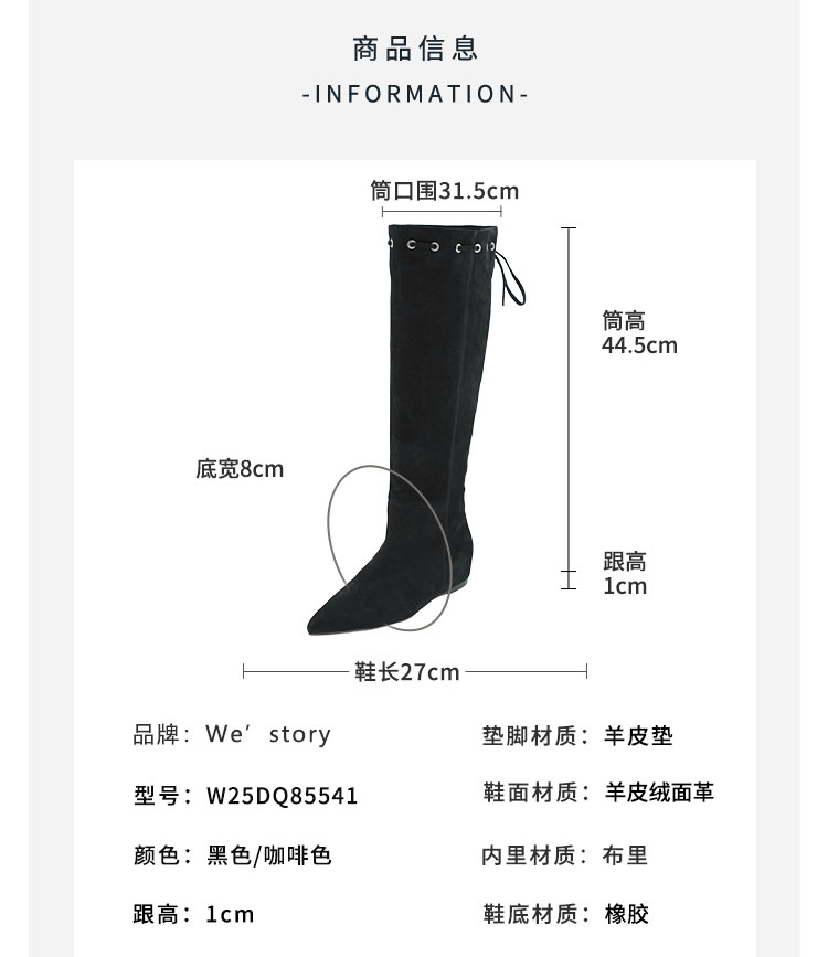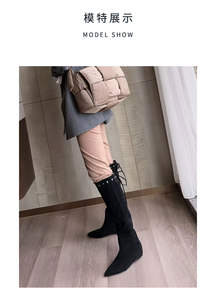 Westory2025年冬季尖头平跟羊京波西米亚休闲风宽松一脚蹬高靴堆堆靴W25DQ85541