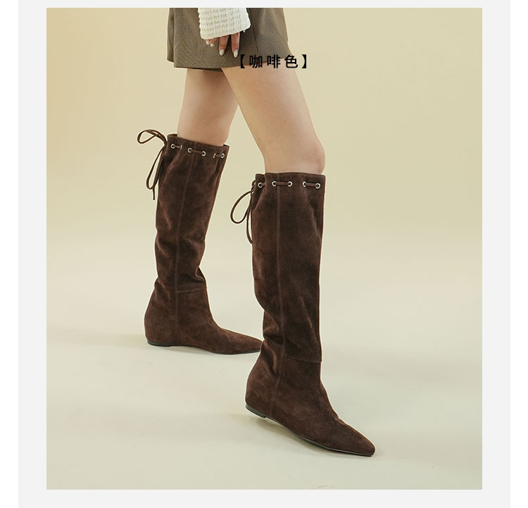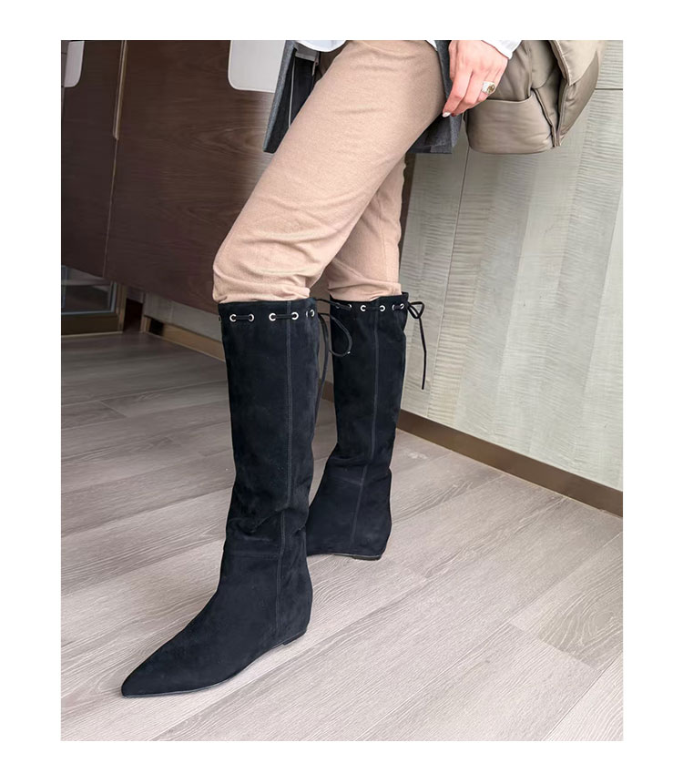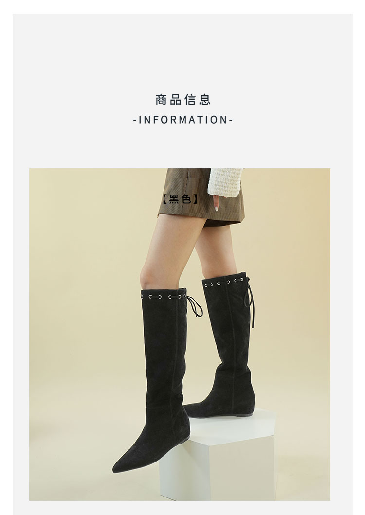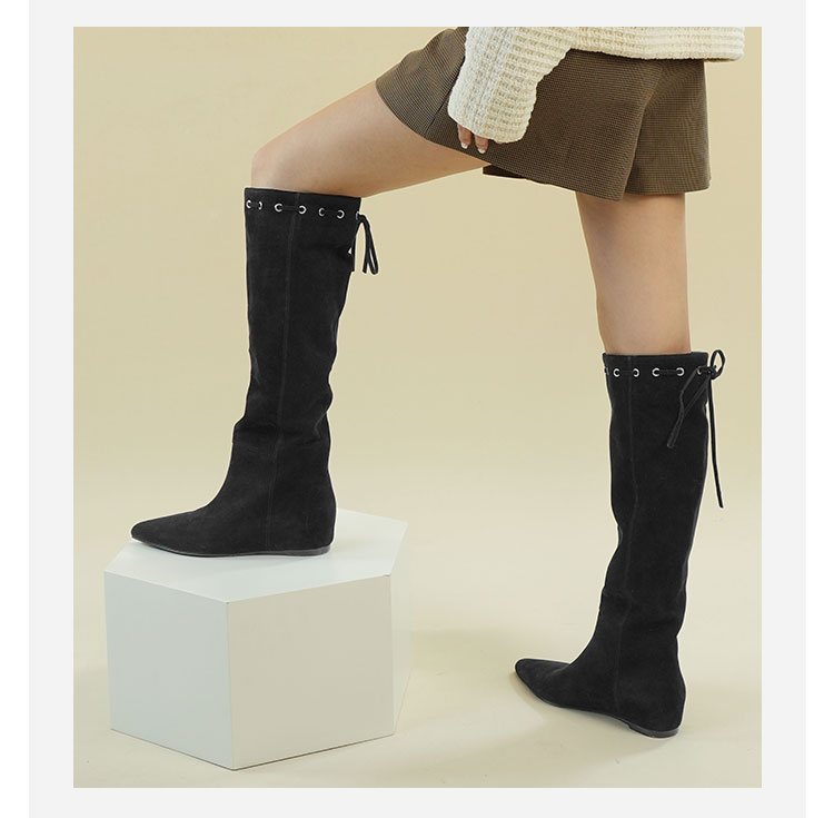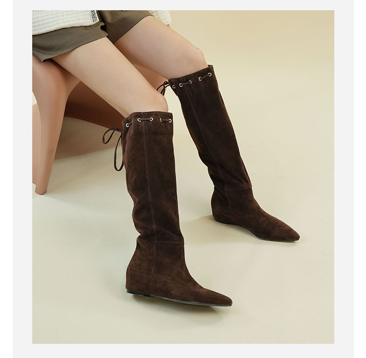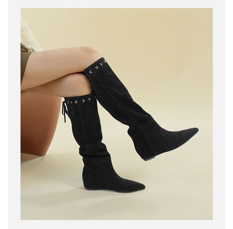 Westory2025年冬季尖头平跟羊京波西米亚休闲风宽松一脚蹬高靴堆堆靴W25DQ85541