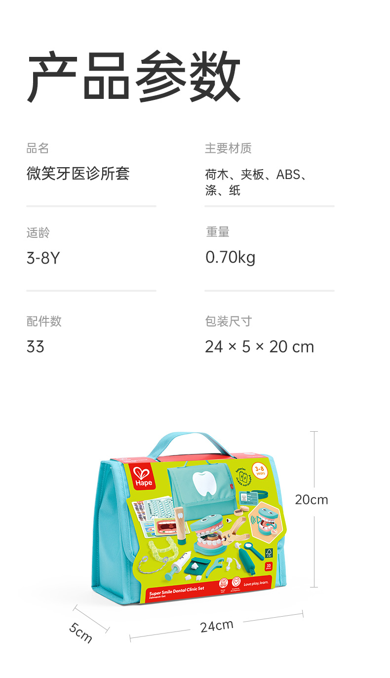 【独家特惠】Hape微笑牙医诊所套儿童益智玩具