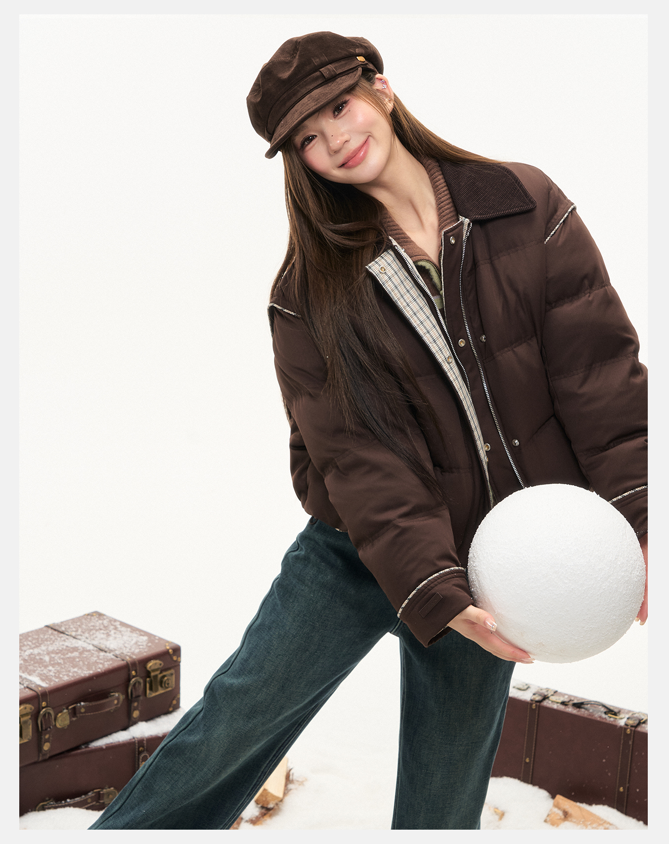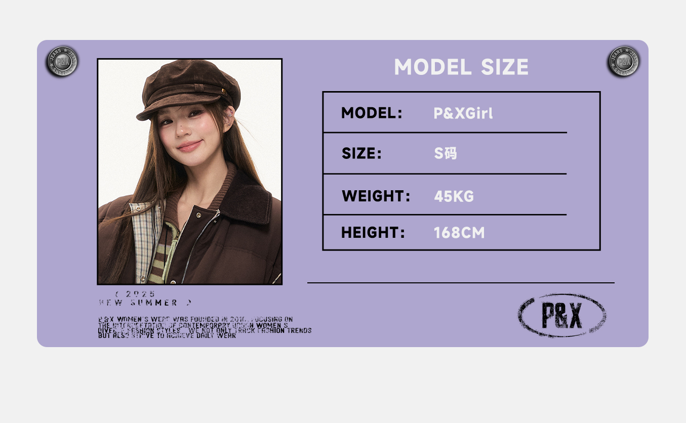 P&X设计师女装2025冬季轻职风休闲保暖短款羽绒服825424048 咖色