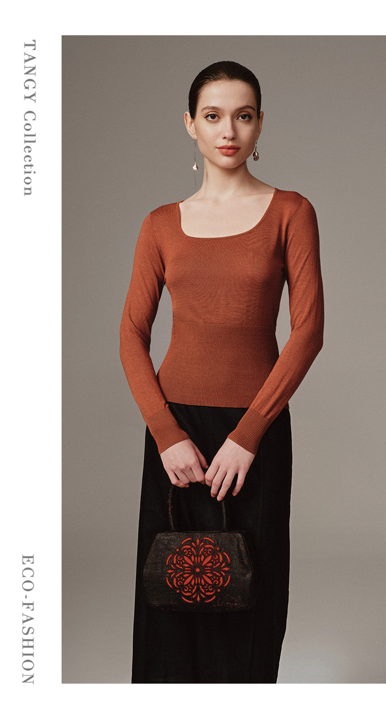 TANGY Collection天意高端2023秋季新品商场同款染秋系列女士长袖针织衫