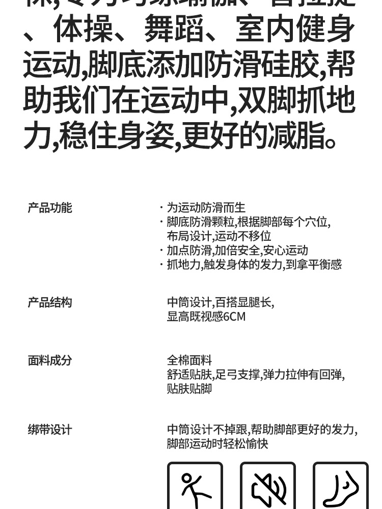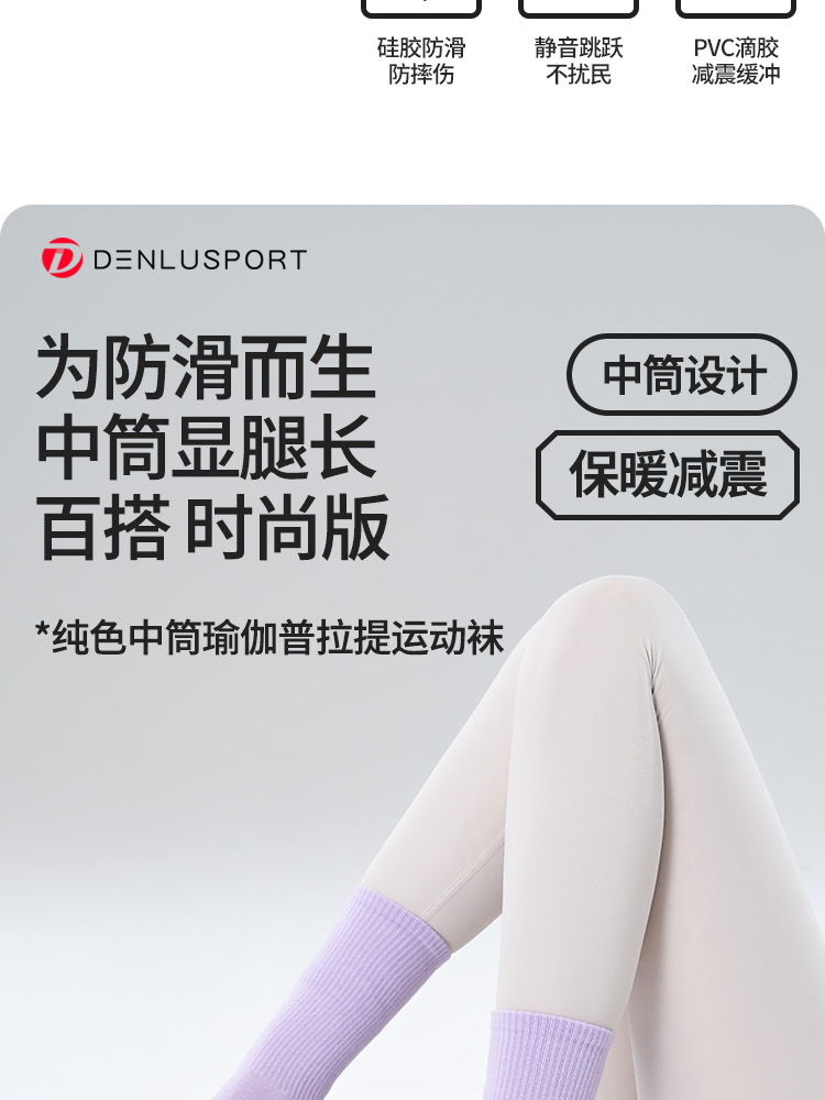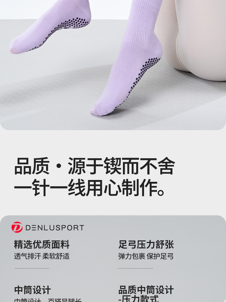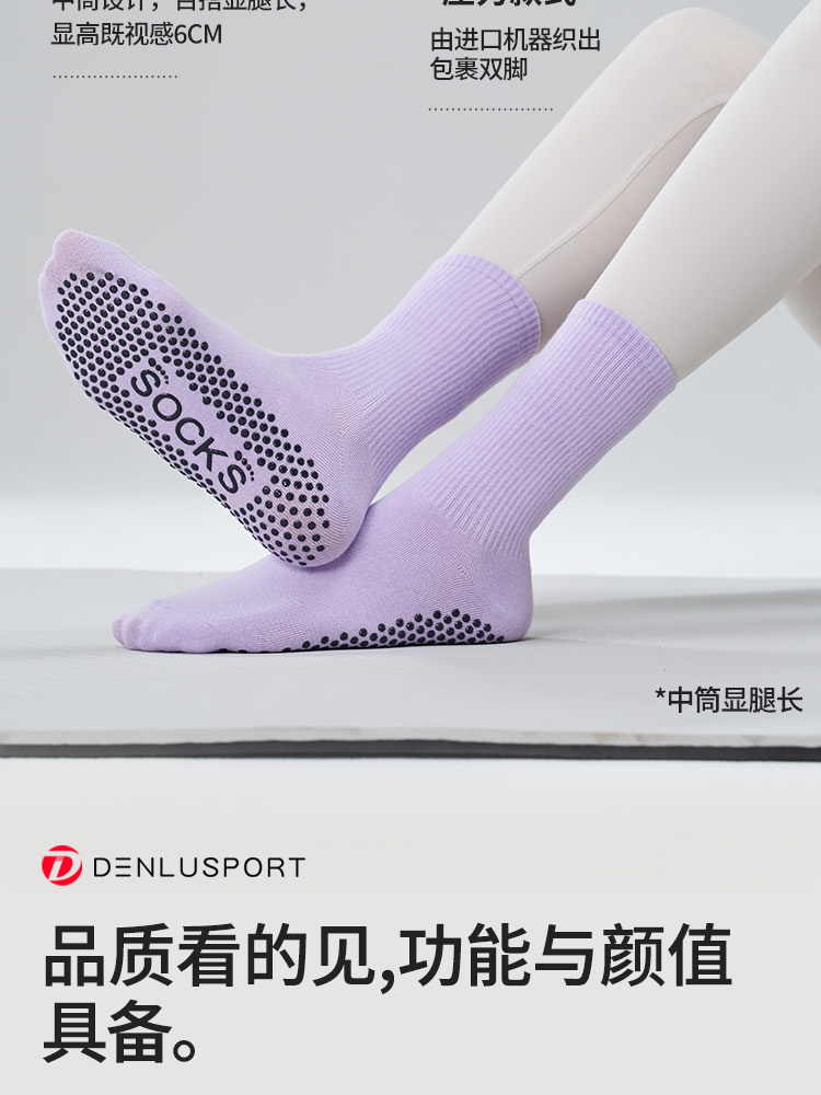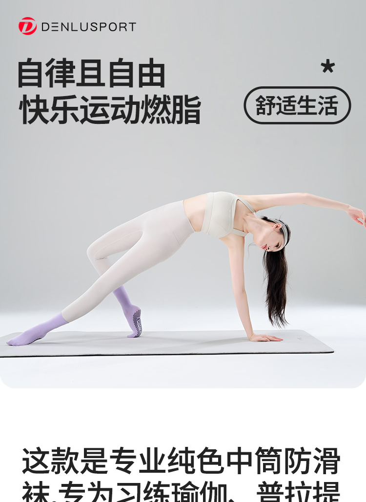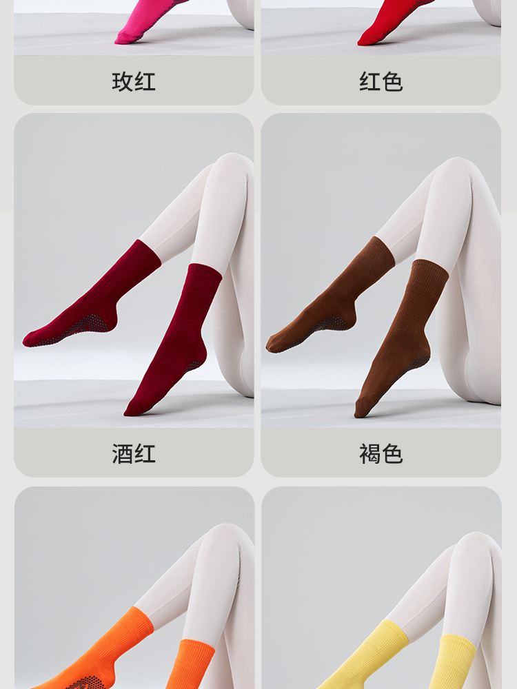 多巴胺纯色中筒普拉提防滑瑜伽袜