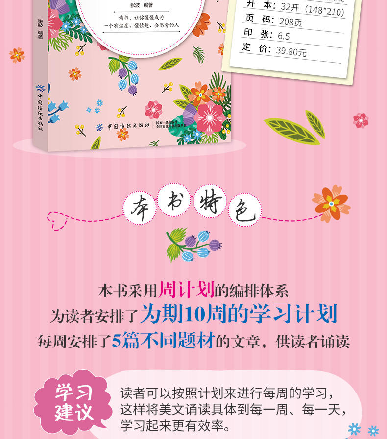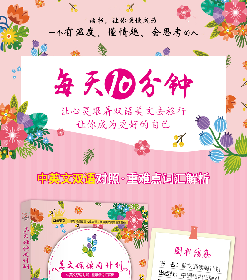 2019新书 美文诵读周计划 中英文双语对照 重难点词汇解析 制定计划提高效率 高中初中生青少年外语英语学习书籍 畅销书 中国纺织