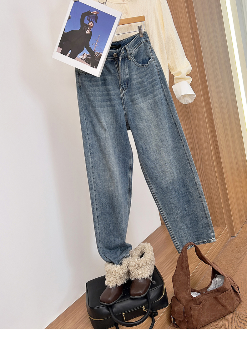 专柜实拍【高棉+ykk拉链】拉夏贝尔/La Chapelle复古休闲百搭一粒扣小个子哈伦裤牛仔裤女裤子26春季新款★
