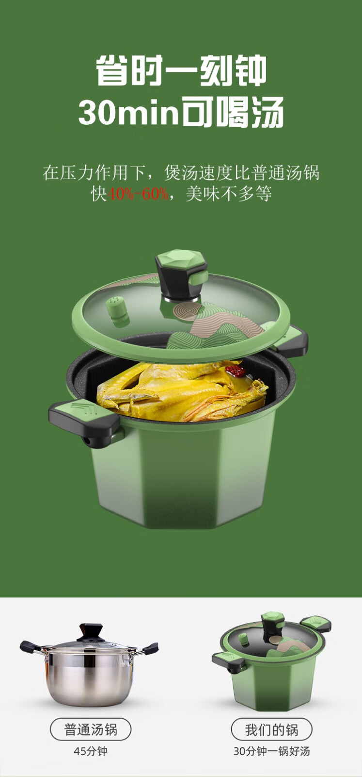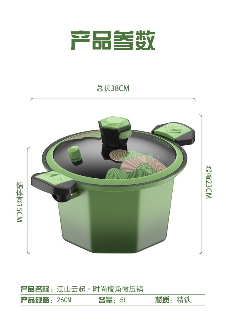 都市太太(DStt)都市太太DSTT江山云起八角多功能微压锅汤锅炖锅焖煮绿色_草绿色