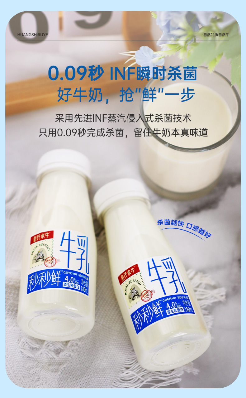 【12瓶】皇氏水牛0.09秒低温水牛鲜奶 180ml*6*2组 A-170-1