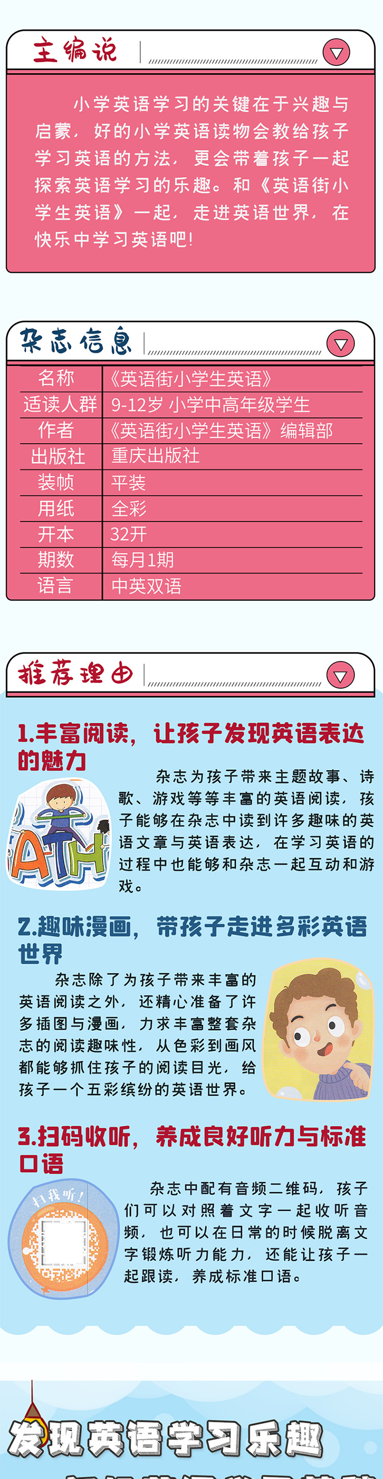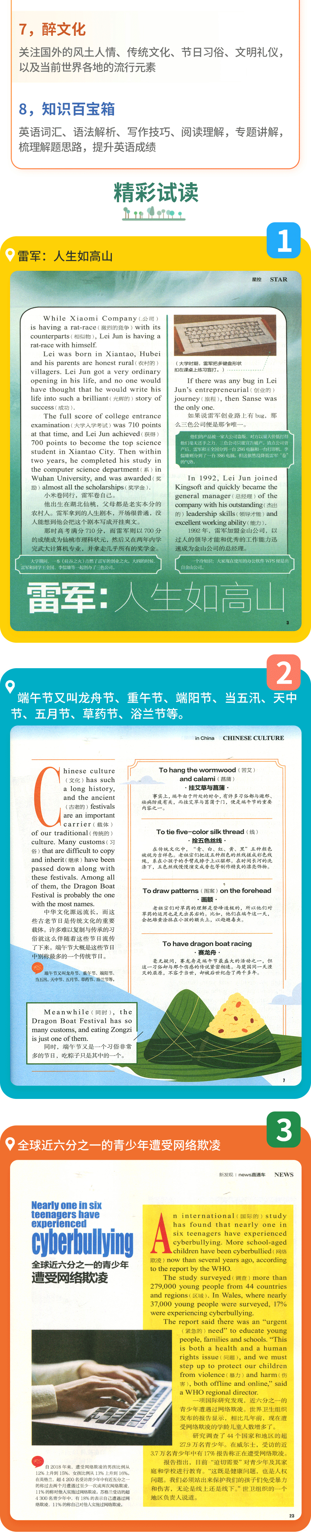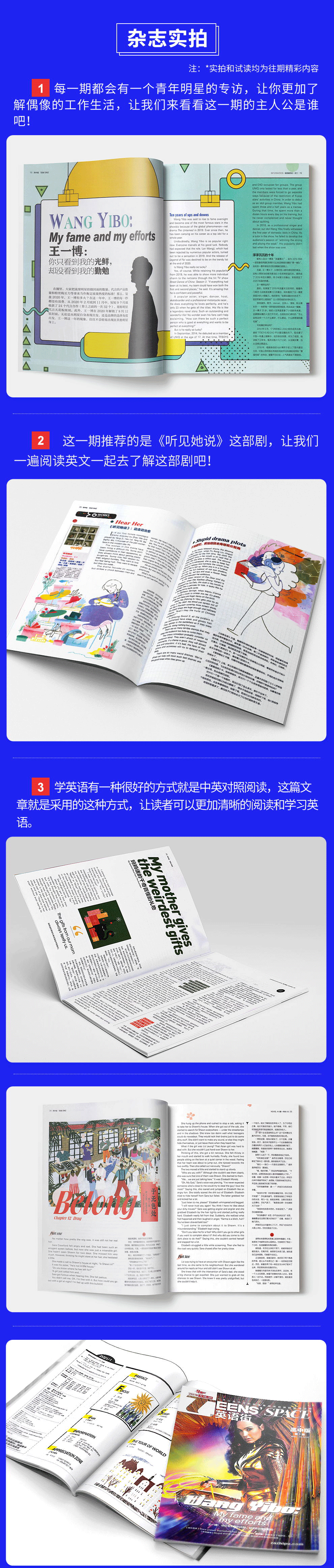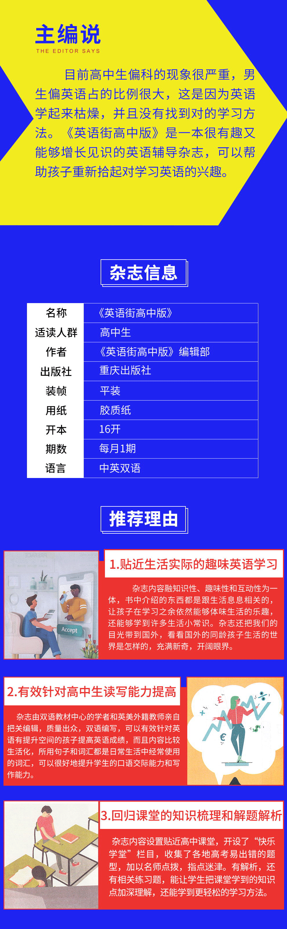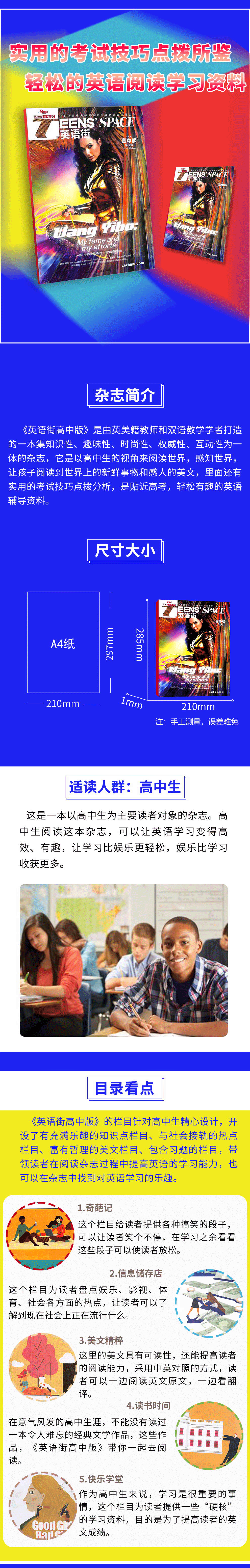 1,英语街小学生英语、初中版、高中版每年7-8月期合刊,高考版无合刊。