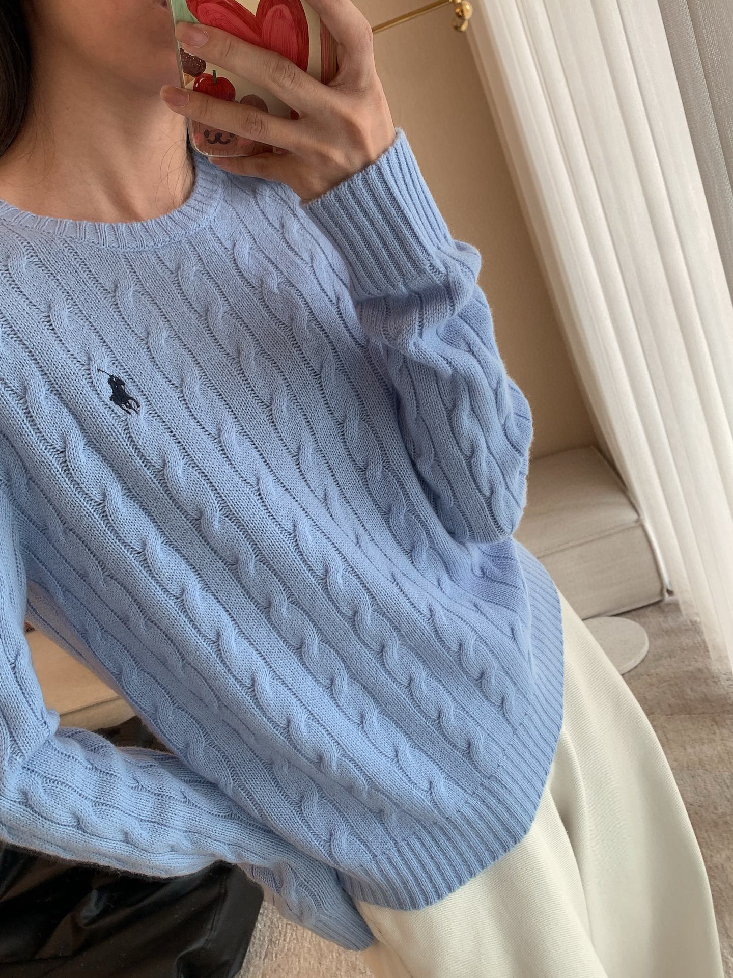 喜欢宽松效果的可以选择大一号,天蓝色,奶白色温柔了岁月