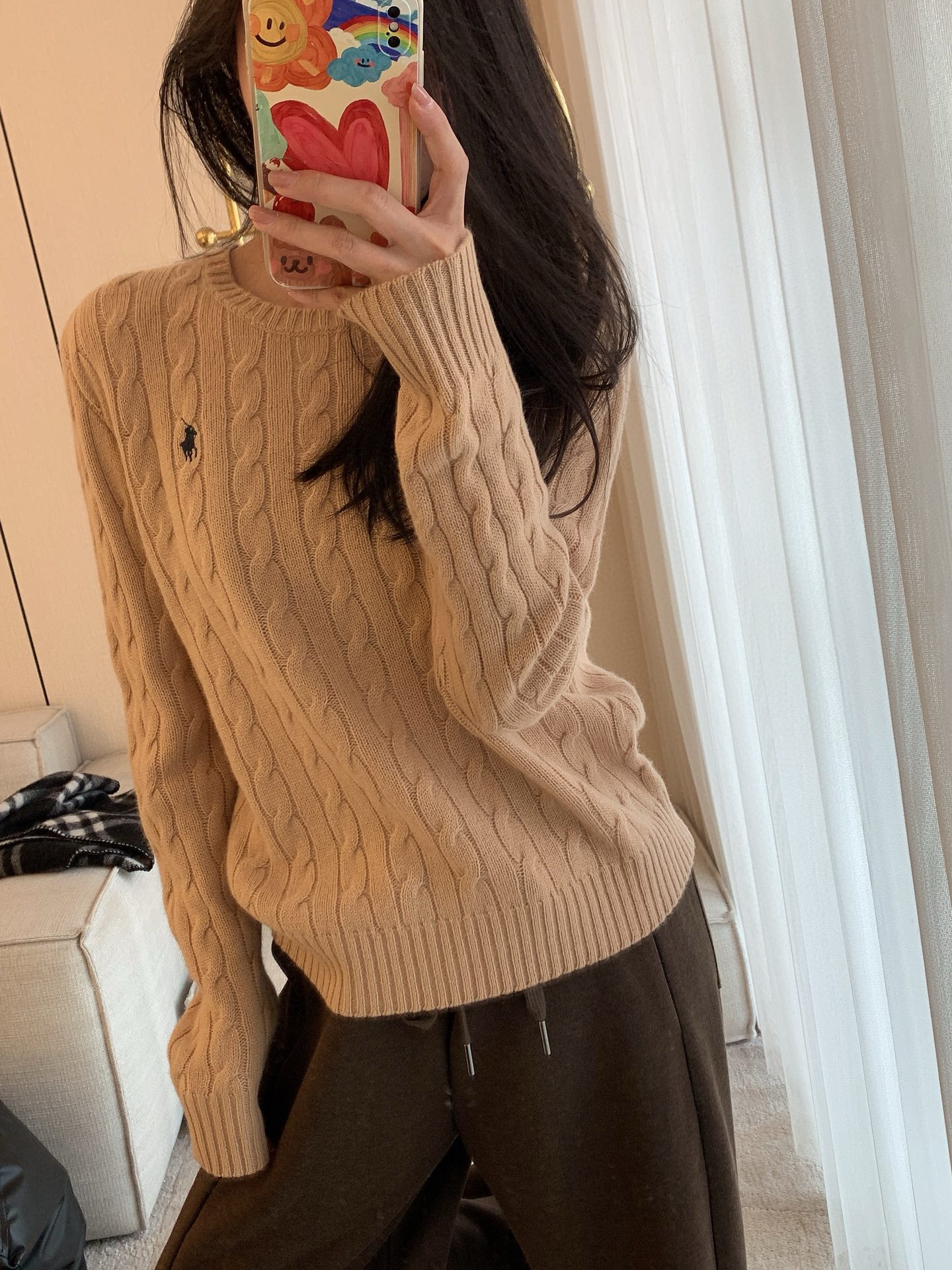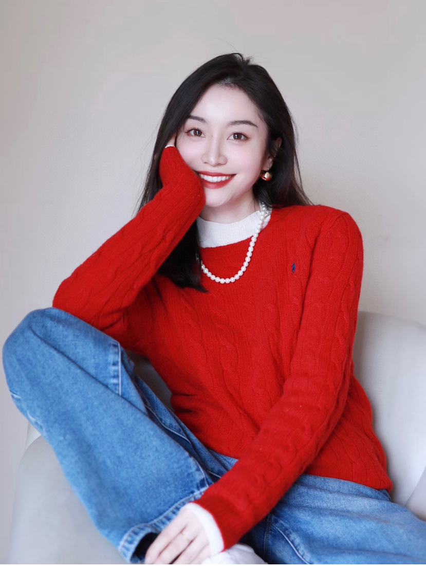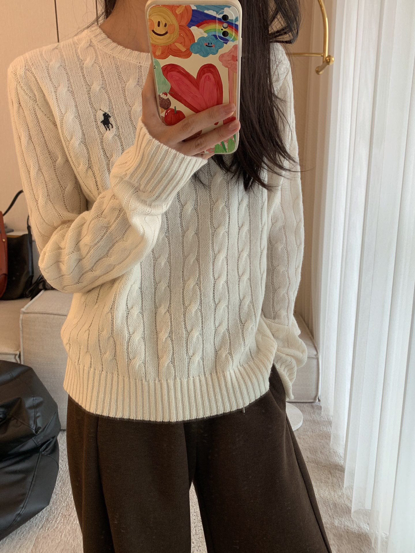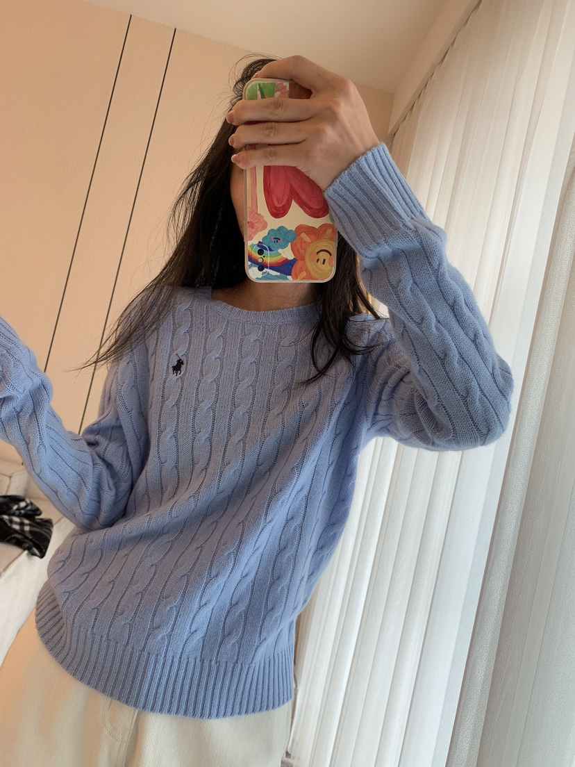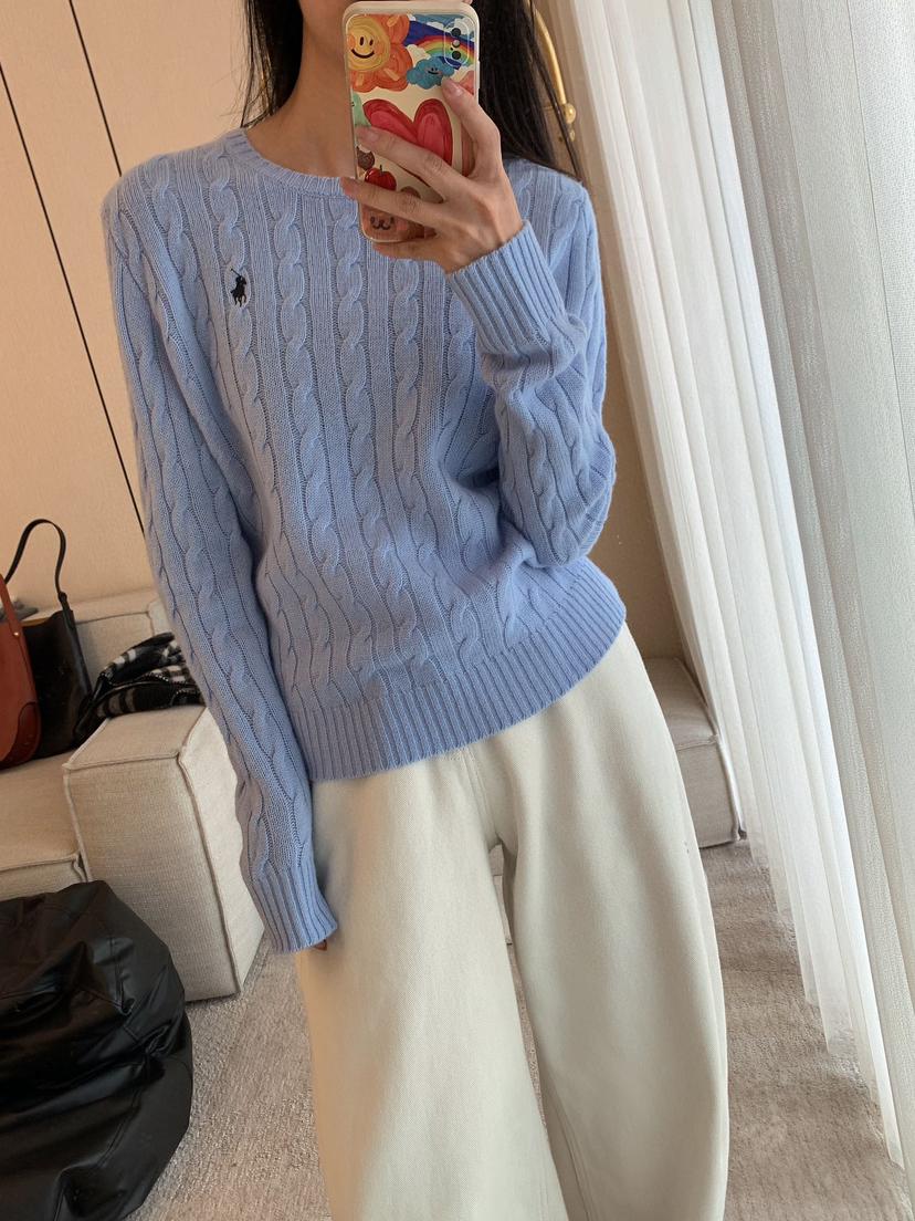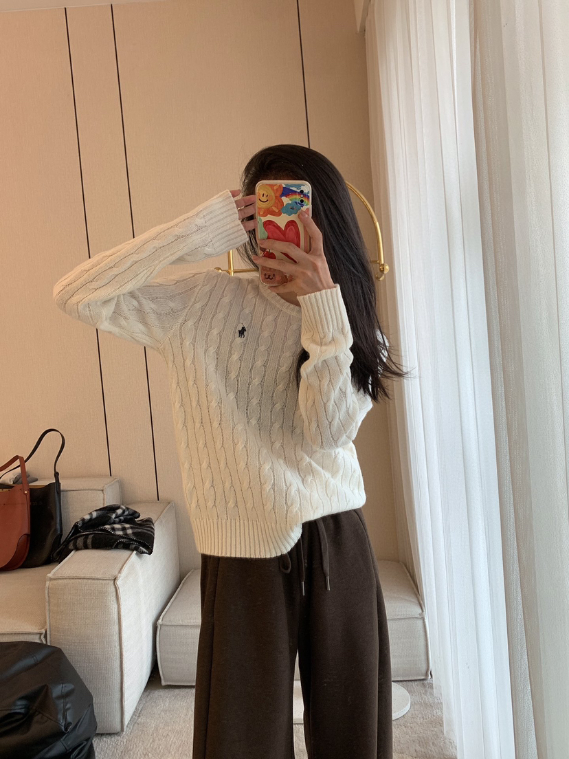 114-2 亲戚工厂 原材 80羊毛20羊绒 小马刺绣 圆领针织长袖 温润亲肤舒适