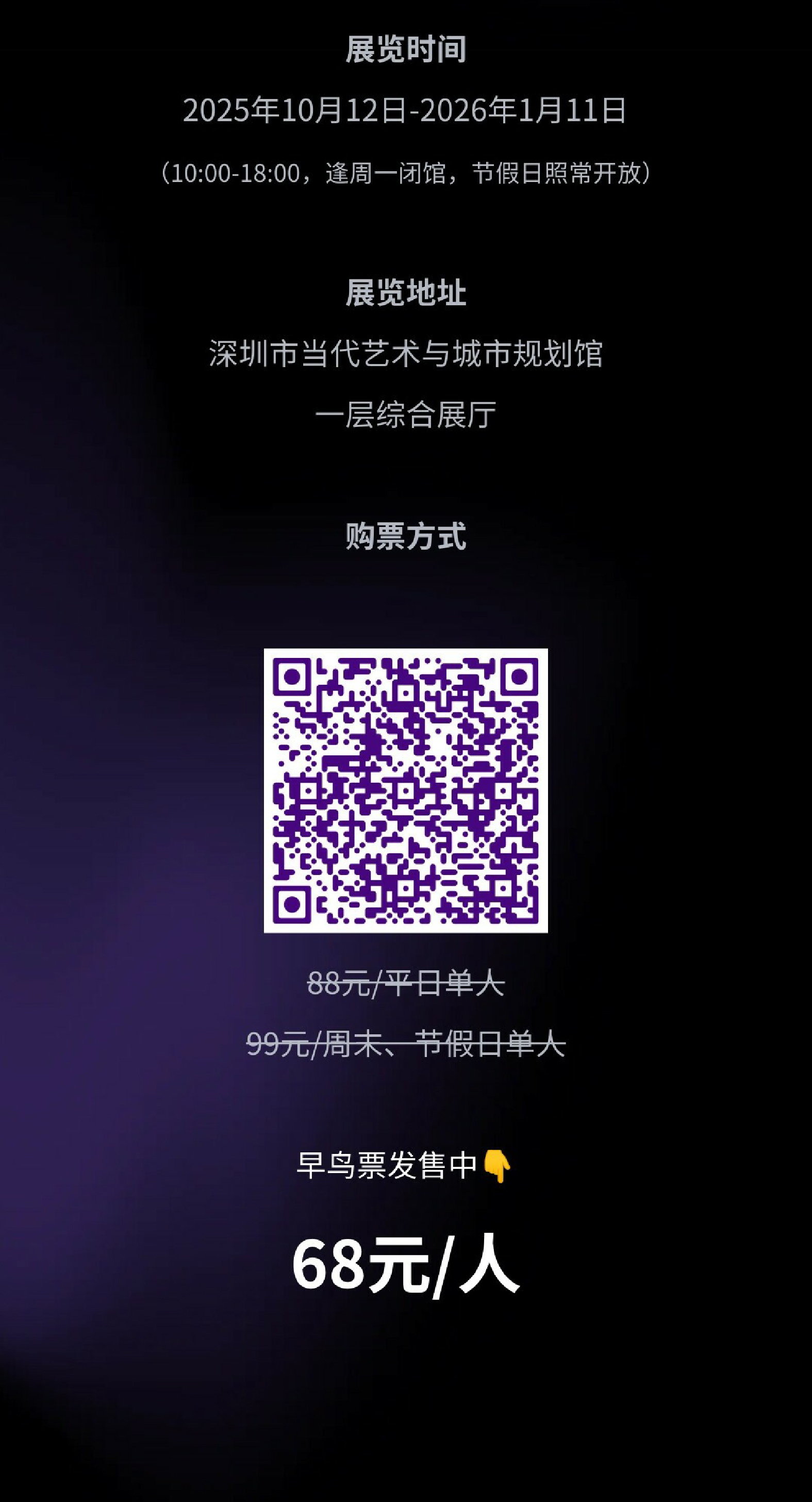 9、观众购票成功后,均视为已详细阅读各项须知,并默认同意本展览的所有规定。深圳市当代艺术与城市规划馆拥有最终解释权。