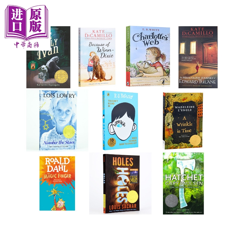 预售 【中商原版】经典儿童文学读物共10册 英文原版 畅销青少年小说 英语阅读 纽伯瑞夏洛的网 奇迹男孩 数星星 手斧男孩 魔法手指