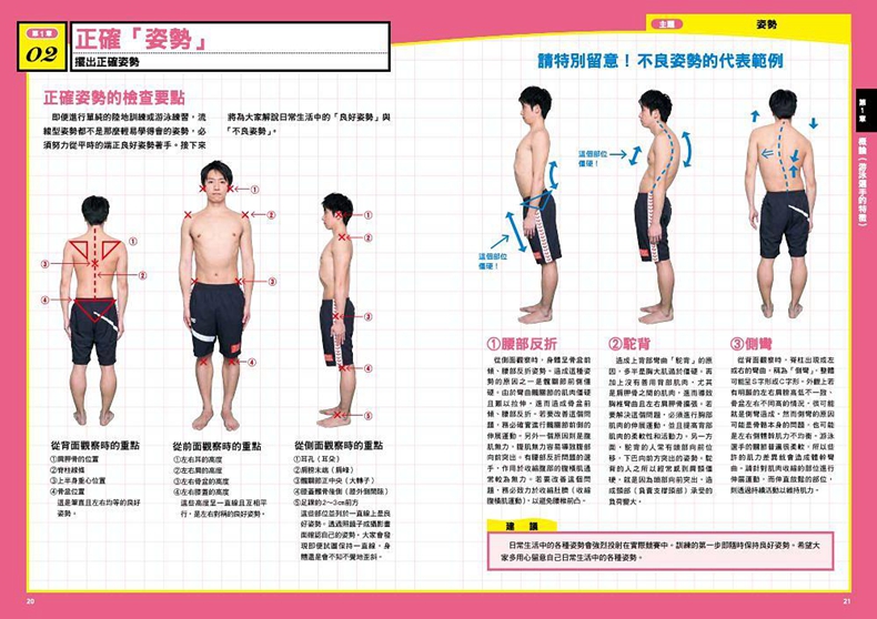 內容架構採用階段性編排方式,第1章為身體結構概論、第2章和第3章為主要伸展運動、第4章和第5章為訓練解說篇。