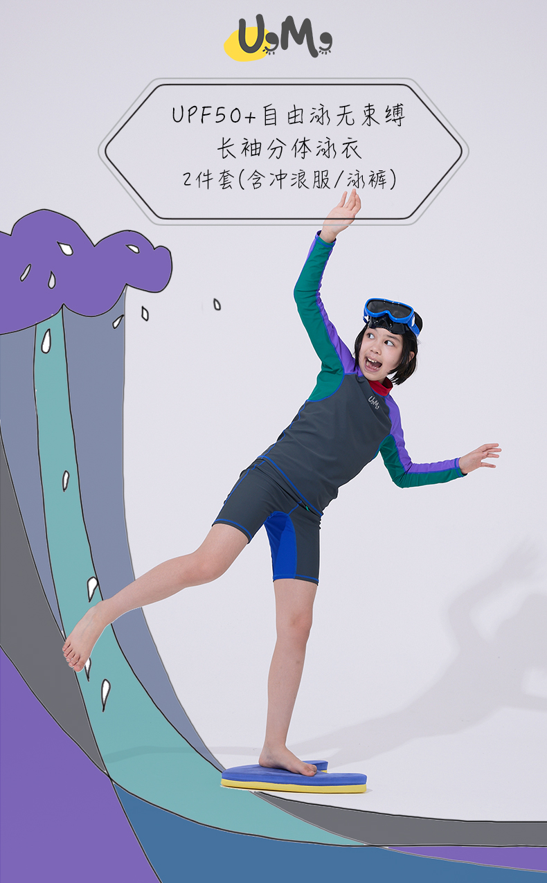 【代发】Uzmz有这么只【分体长袖短裤】男童女童儿童连体泳衣冲浪服防晒短袖宝宝泳装11