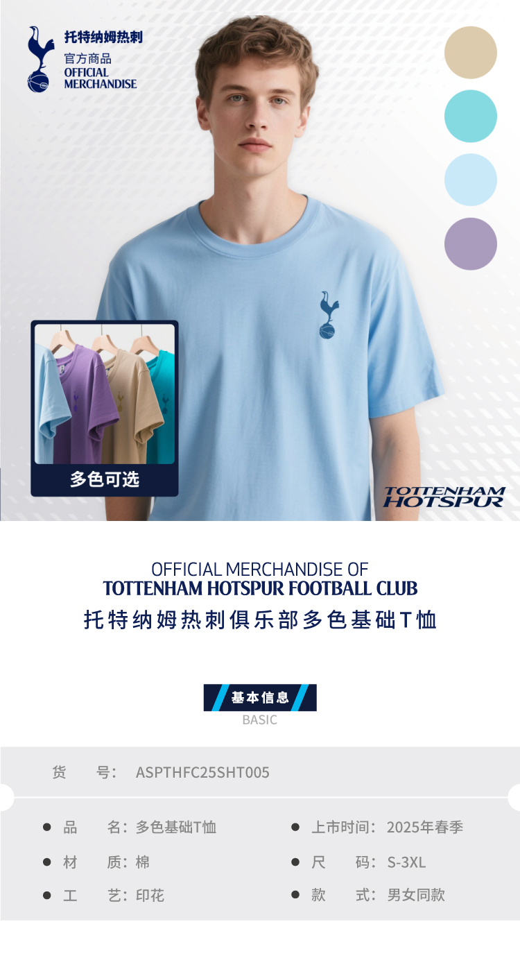 【官方正版】托特纳姆热刺俱乐部 | 夏季多色基础T恤百搭简约短袖舒适透气