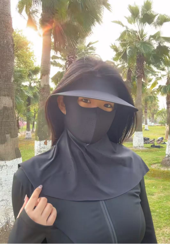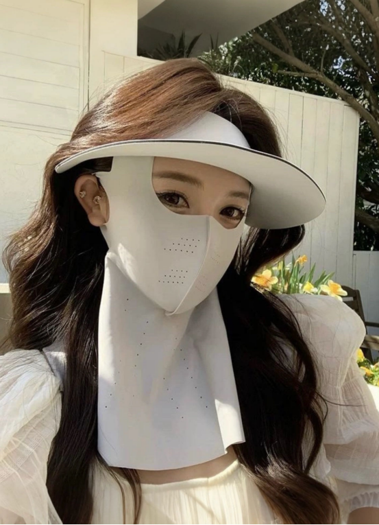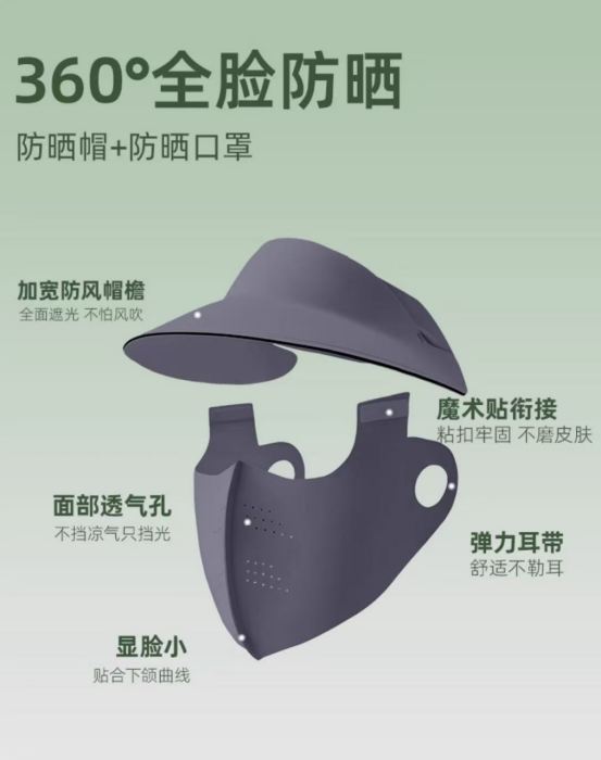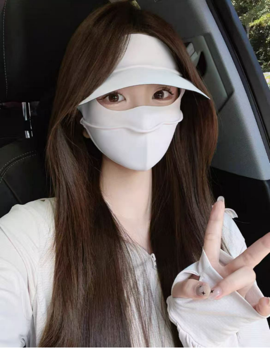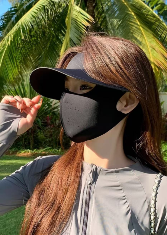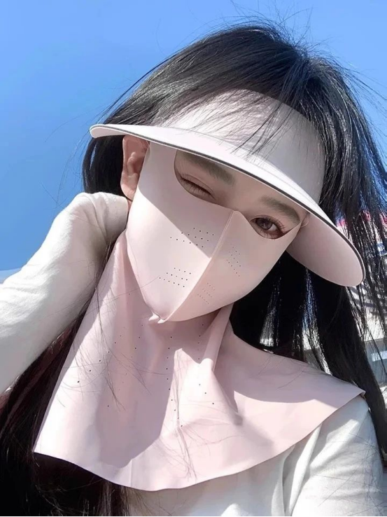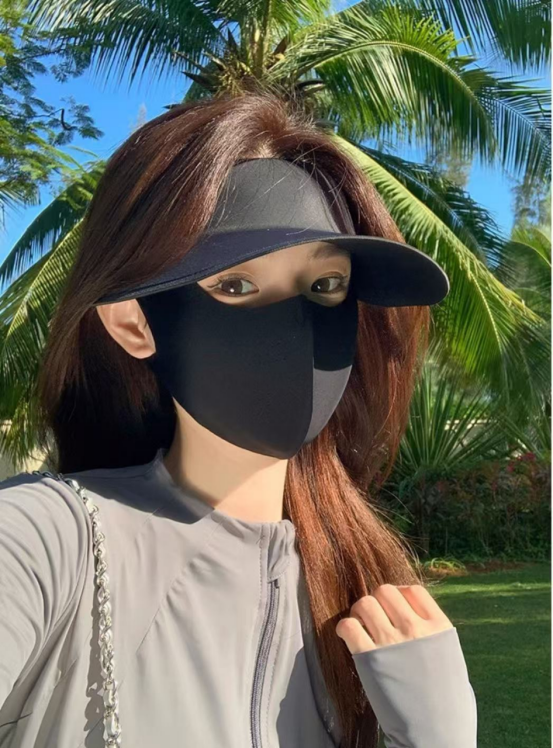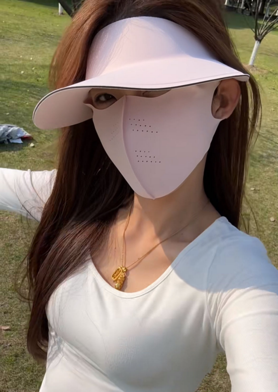 重点总结: ✅一件顶三件,360°全方位环绕防晒 ✅UPF50+,隔绝98%紫外线,轻松防晒 ✅冰丝透气面料,一点也不会觉得闷 ✅高弹不勒,佩戴舒适 ✅高颜值,风格百搭,营造高颅顶,显脸小