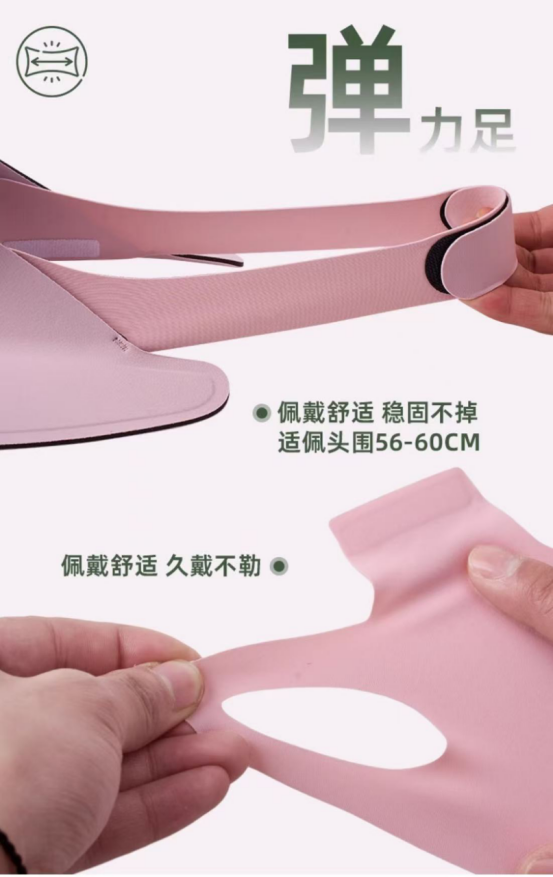 ✅可调节弹力便携式魔术贴 适合不同的头围,戴着也更稳固 ✅加宽高弹力挂耳 轻薄又亲肤,挂在耳朵上舒适不勒 几乎感觉不到它的存在。