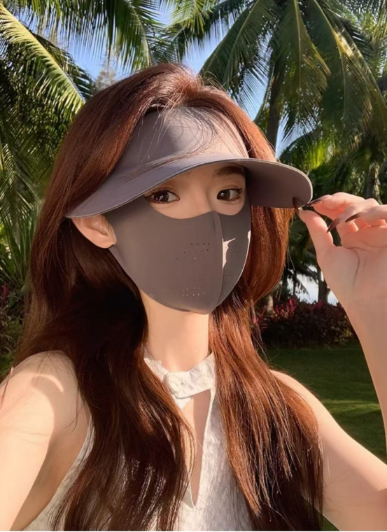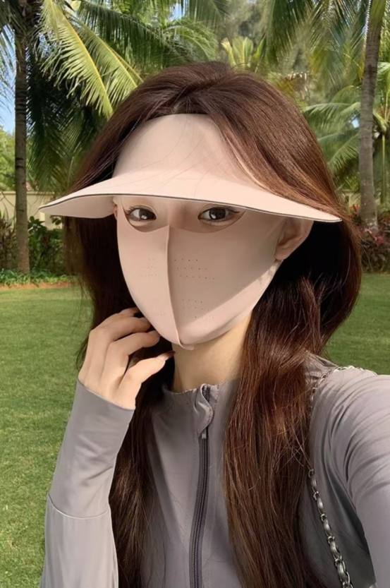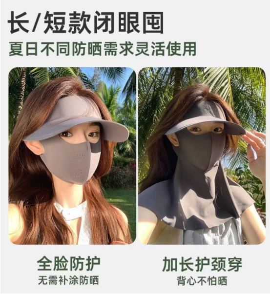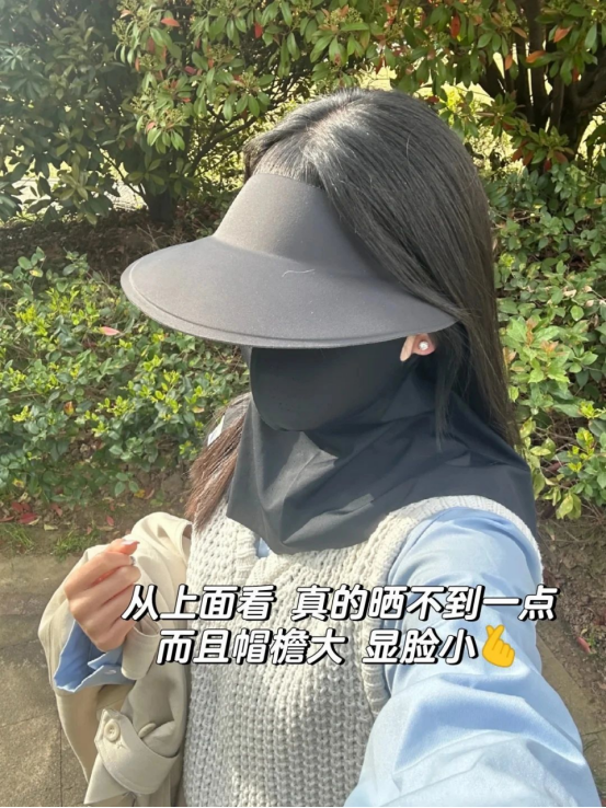 真的晒不到一点 而且大帽檐更显脸小,轻松适配各种造型 👉三合一加长款: 直接连脖子也能护住 日常戴可以避免暴晒脸脖两色 👉二合一短款 面罩面积也足够大,眼角也能照顾到 而且不遮挡视线