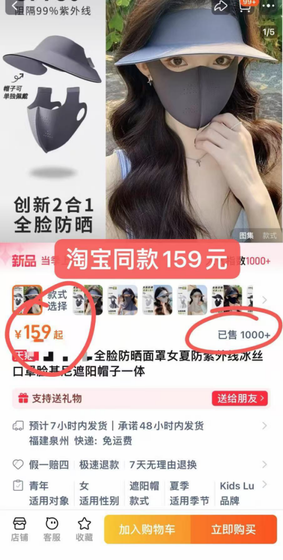 相比市面上单件防晒帽、防晒口罩 它直接升级成防晒帽+防晒面罩+防晒披肩三合一结构 从头护到脖子 戴上真的就不想摘下来的无痕防晒帽 非常轻薄,戴上很轻~ 而且颜值也很高,谁戴谁是巴掌脸! 无论漫步街头、运动健身,还是打卡拍照 戴它都不会出错👍 淘宝同款卖到159 我们只要19.9❗ 去掉品牌溢价去掉中间商 直接对接源头工厂,价格打到极致 姐妹们直接闭眼入!巨划算!