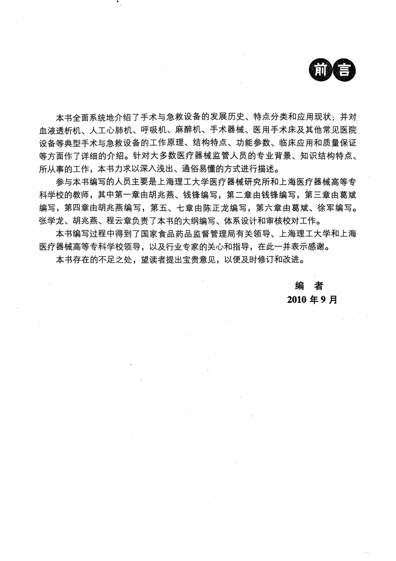 书名:全国食品药品监管人员培训规划教材—手术与急救设备(医疗器械部分)