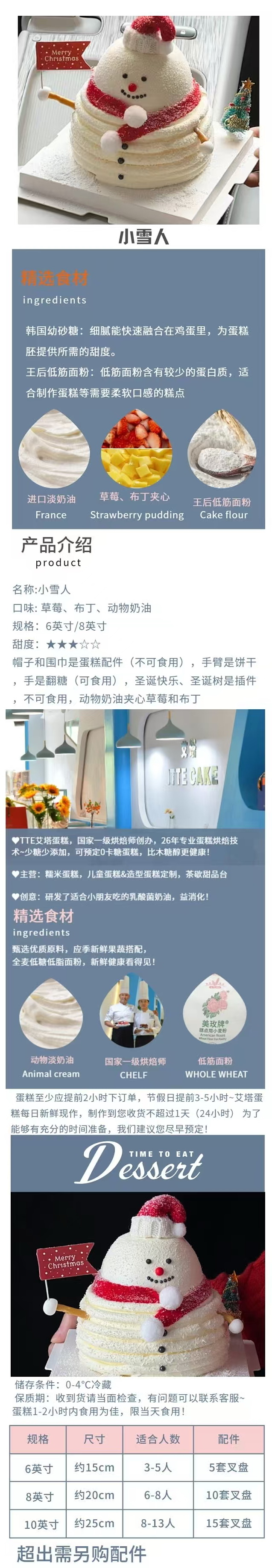 【圣诞小雪人】动物奶油、新鲜草莓+草莓酱,戚风蛋糕胚;插旗可换成Happy Birthday下单时备注;寒来暑往,秋收冬藏,小雪人是冬日美好的回忆,满载着快乐与幸福~