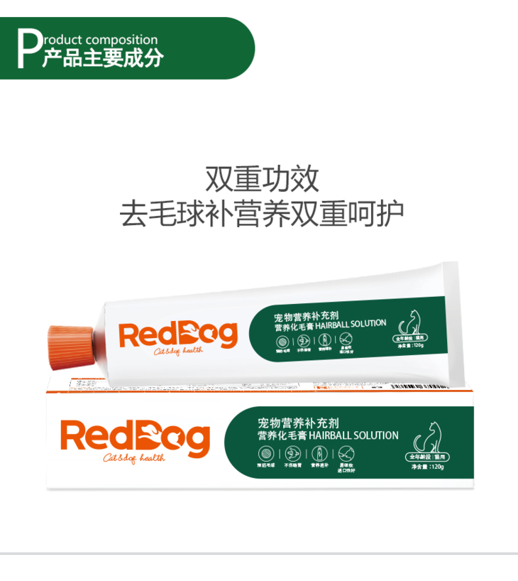 猫研所 红狗营养化毛膏 预防毛球适口性佳猫咪爱吃 全年龄适用 120g/支