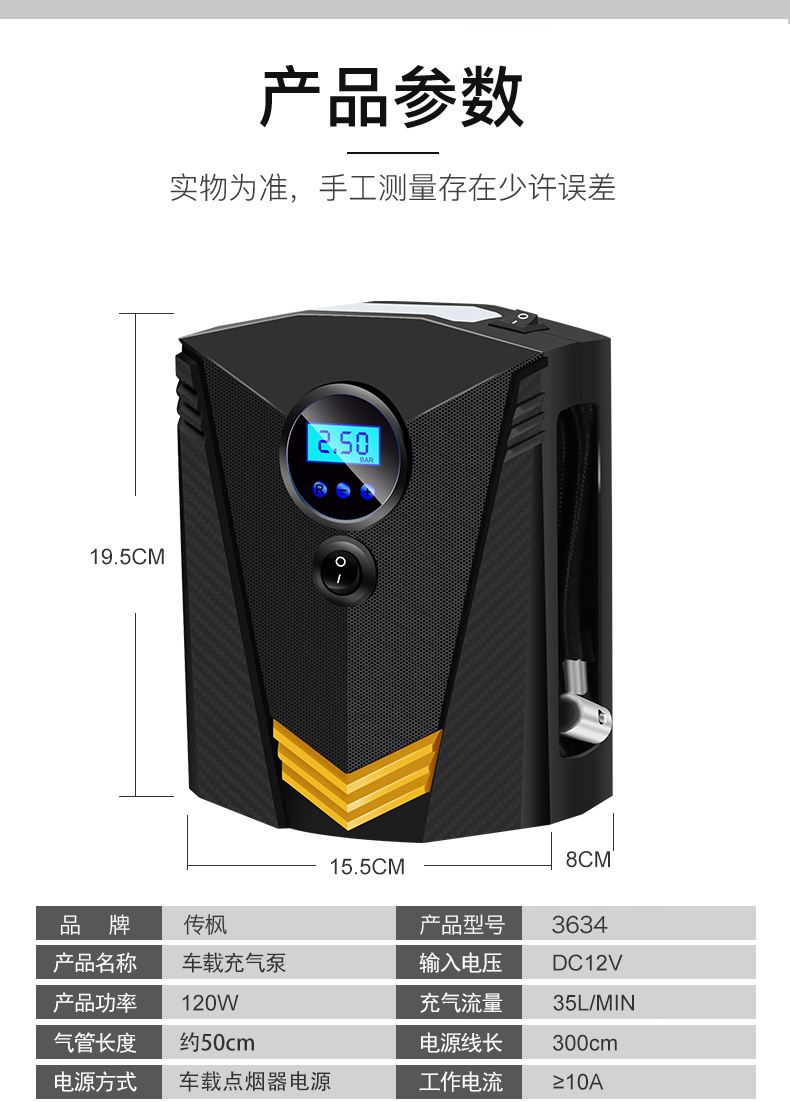 传枫 车载充气泵预设胎压数显/指针带照明打气泵汽车轮胎充气 CF-3634