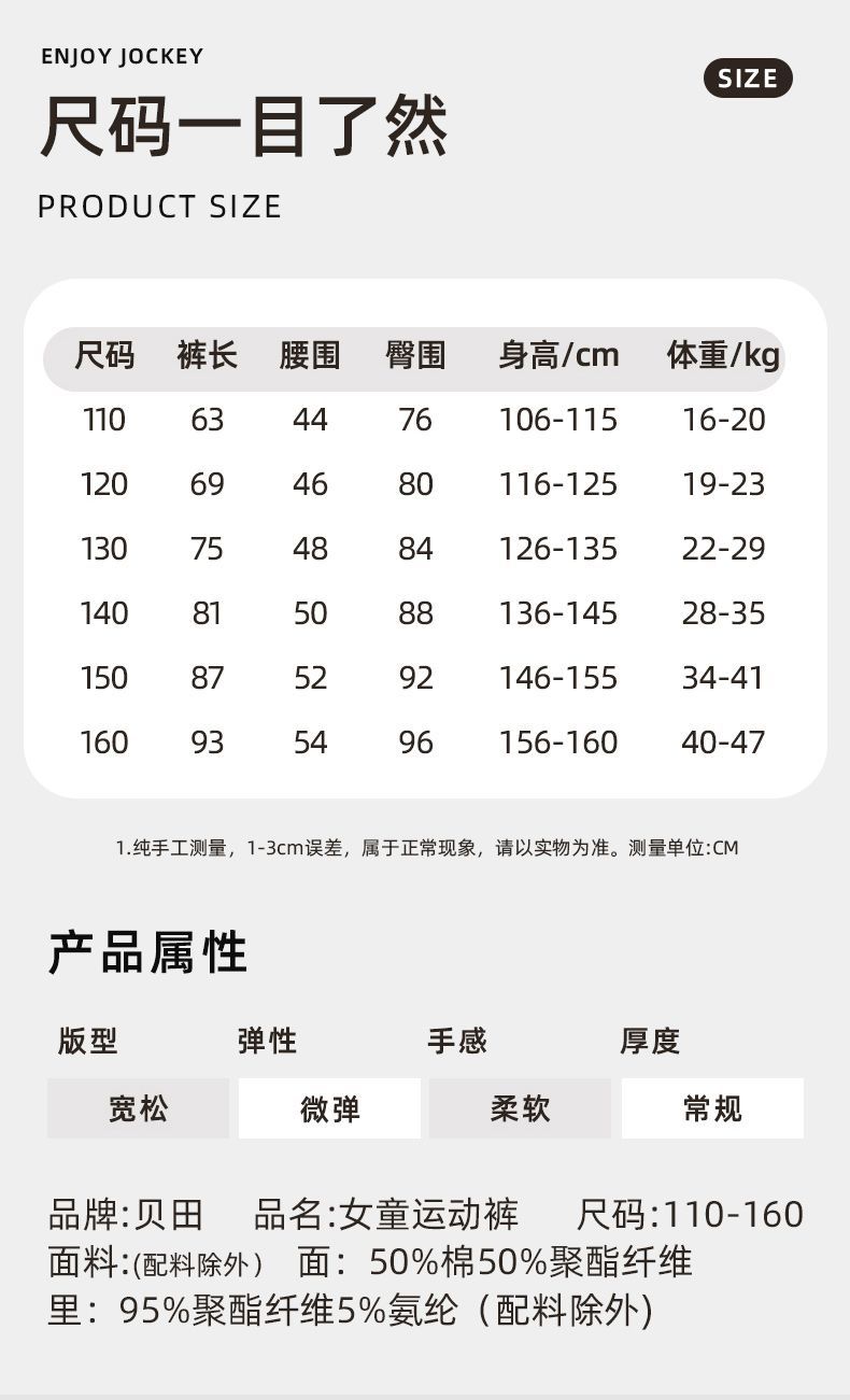 贝田女童运动裤春秋款儿童裤子秋季2025新款洋气女孩秋天大童卫裤