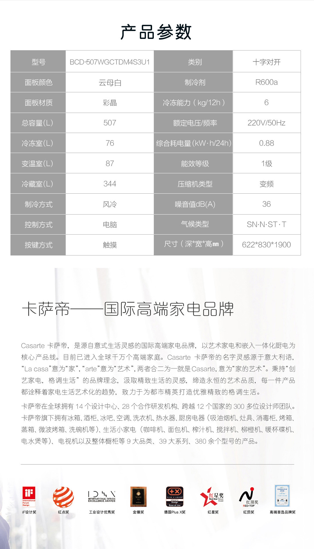 卡萨帝(Casarte)冰箱 BCD-507WGCTDM4S3U1