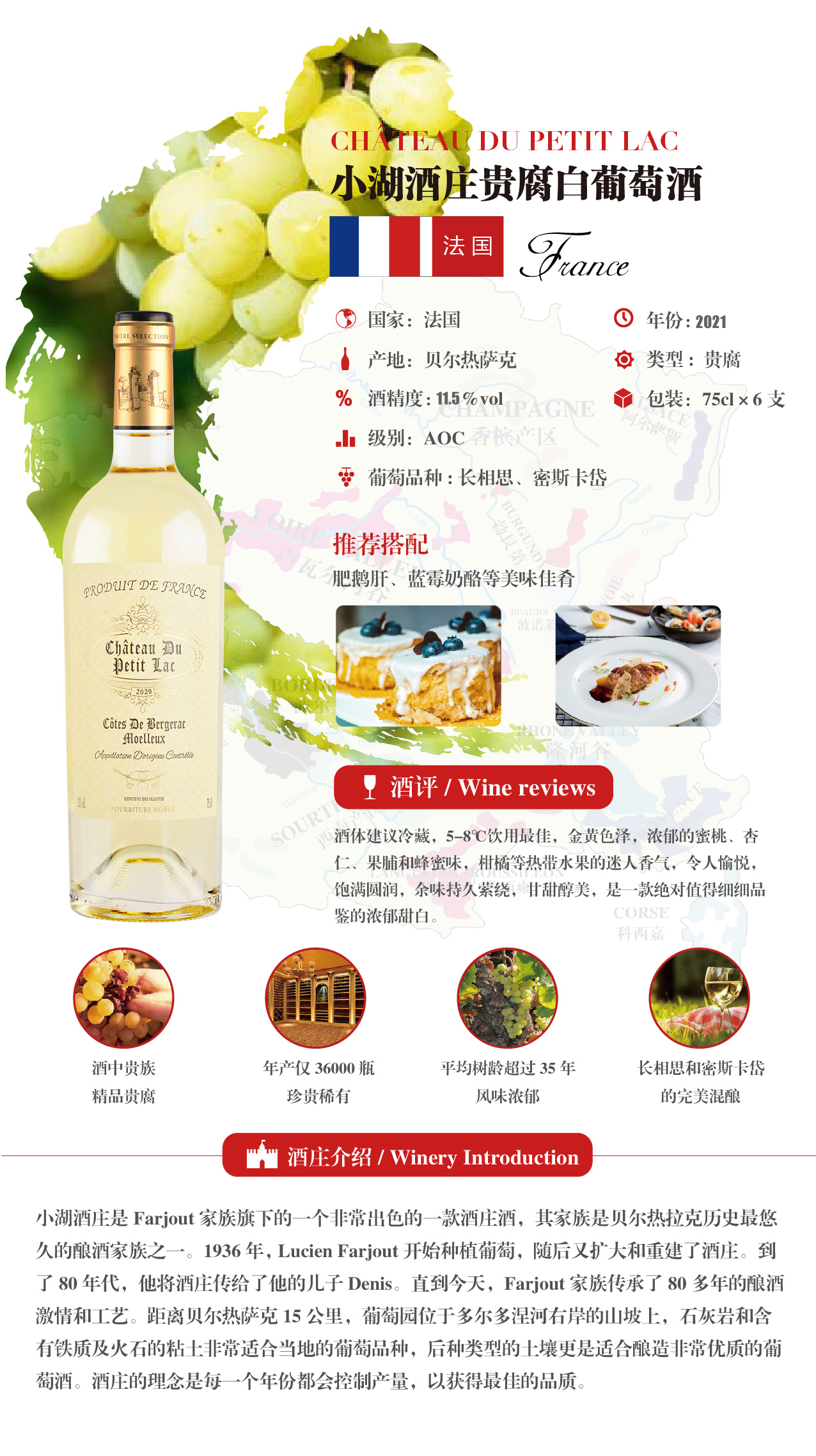 法国贝尔热拉克产区AOC半甜型贵腐白葡萄酒750ml