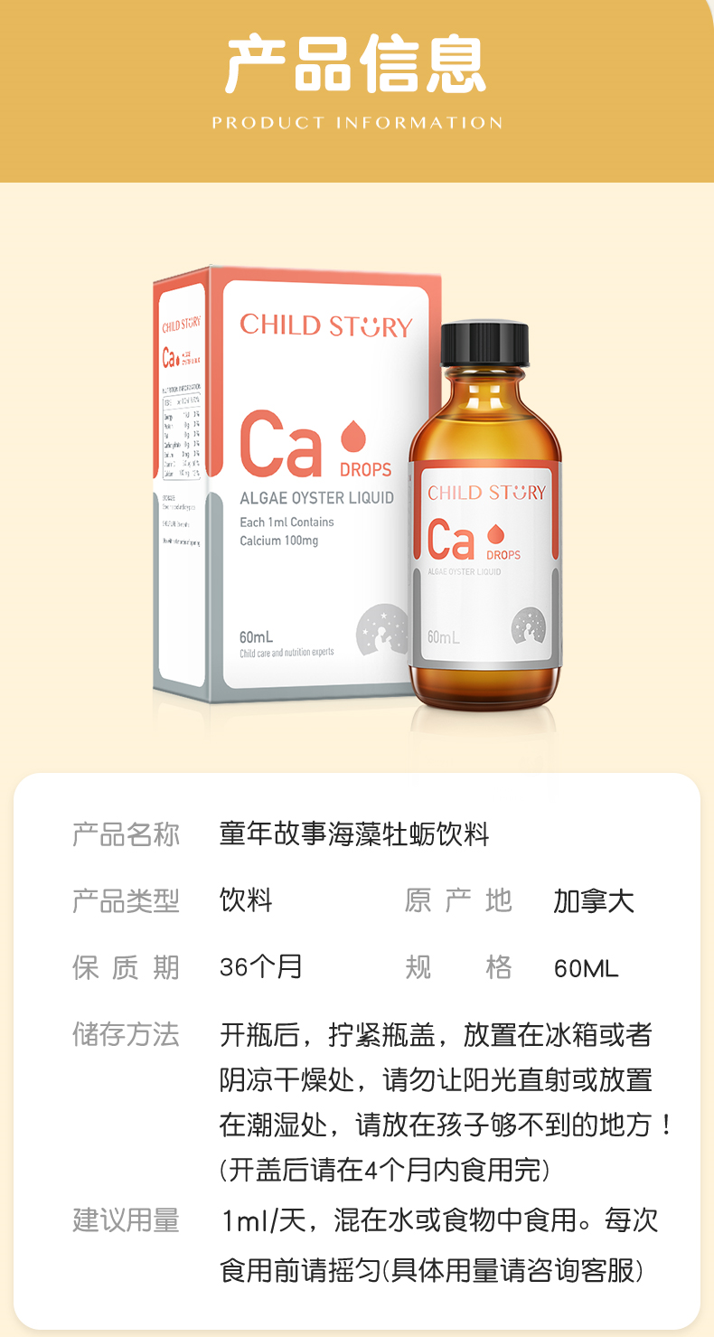 童年故事Ca钙滴剂 海藻牡蛎饮料60ml