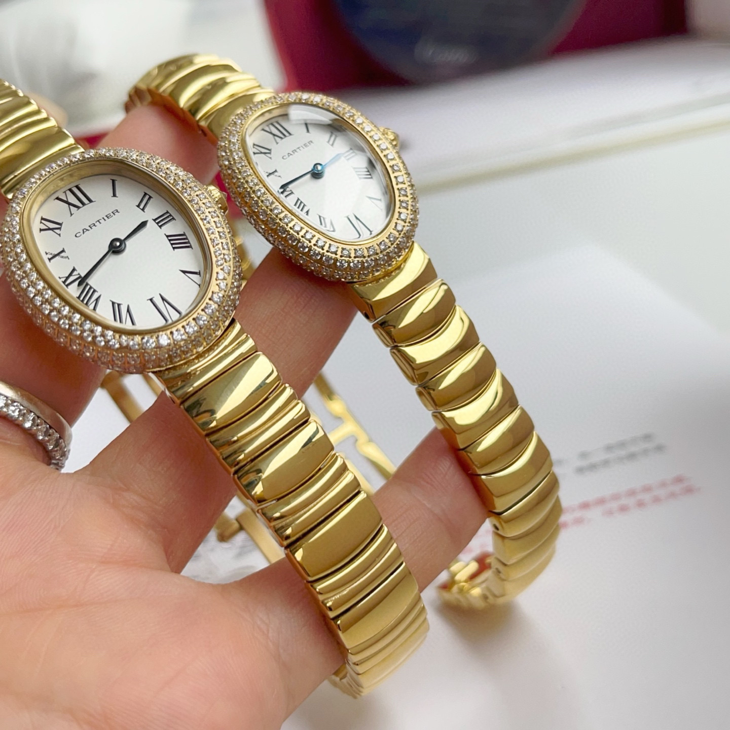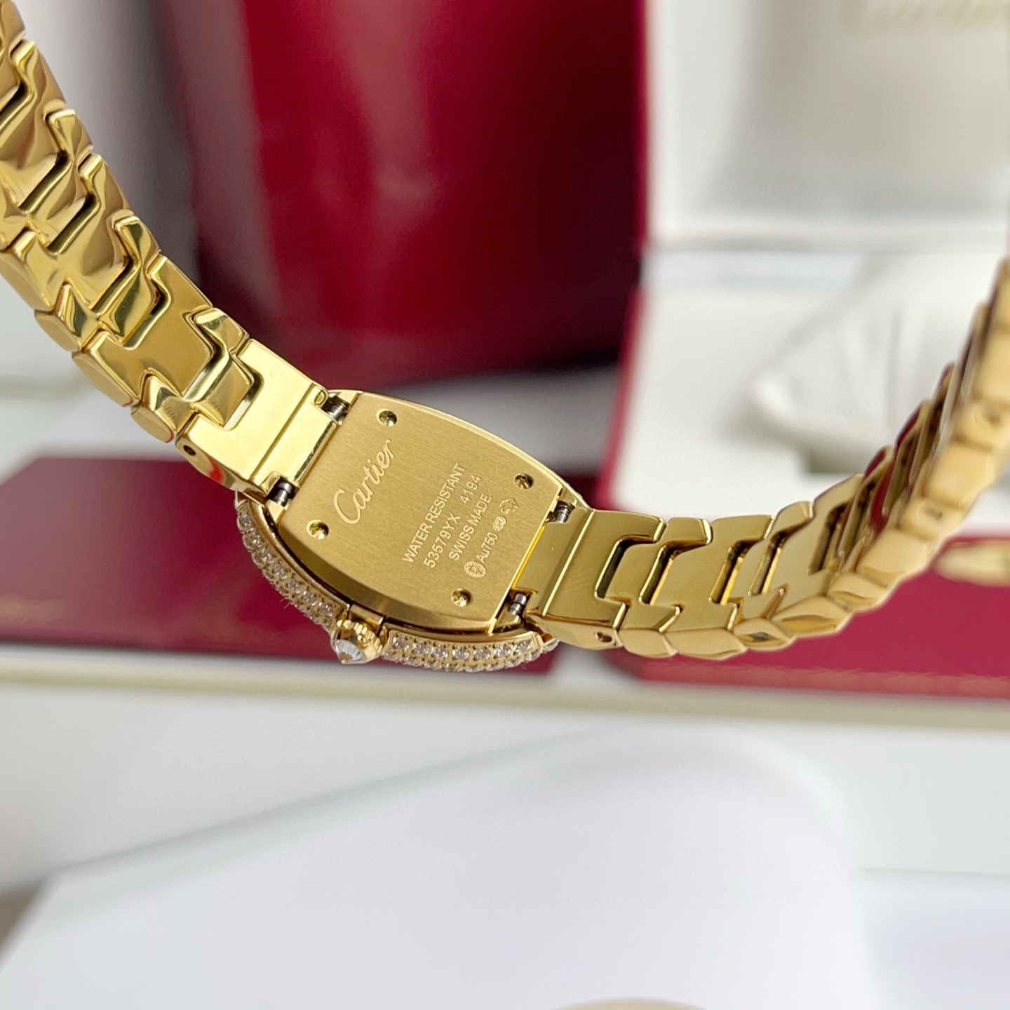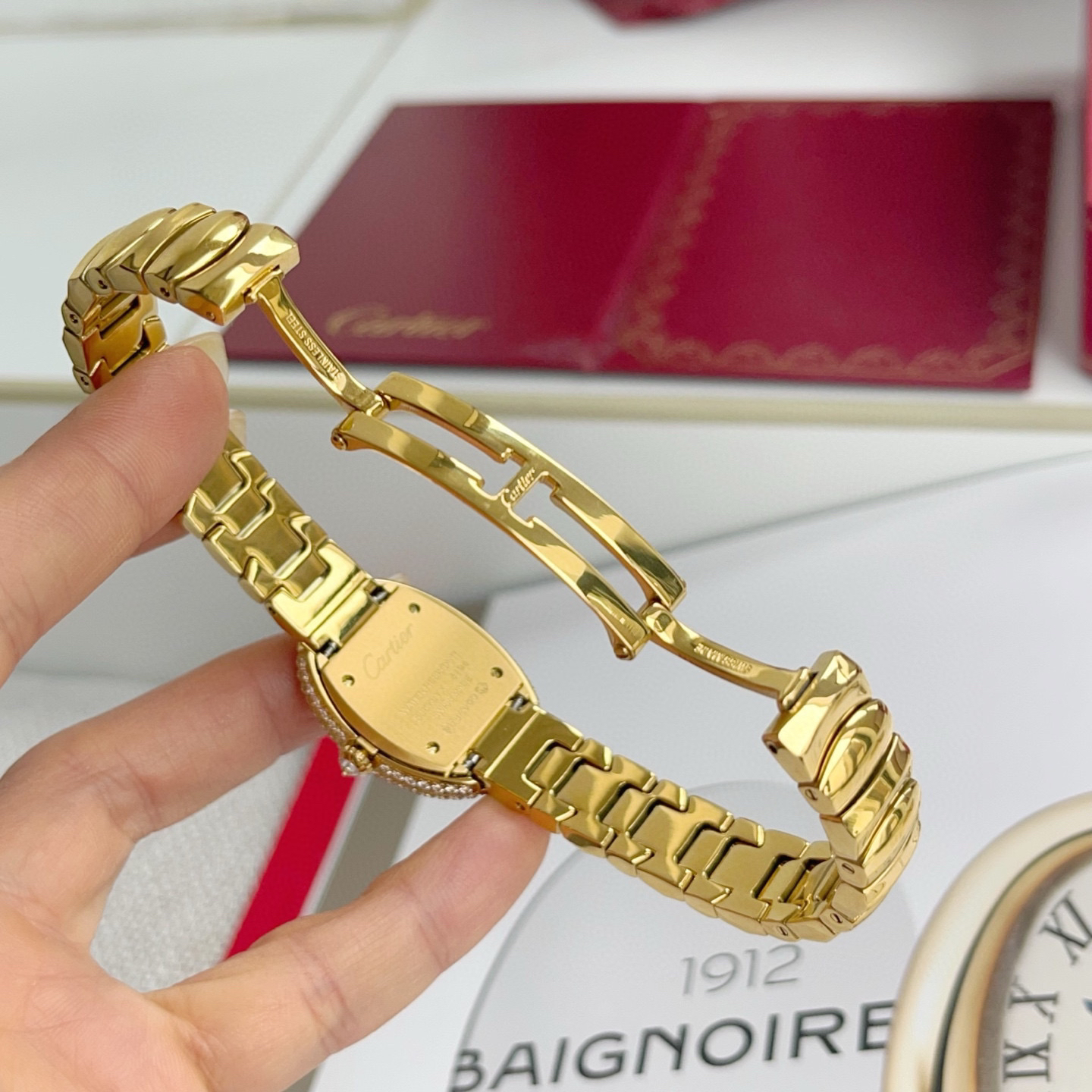 卡地亚浴缸Baignoire1920系列,进口瑞士石英机芯,316L精钢表壳表链,淬火钢蓝指针,标志性罗马表盘,弧形水晶镜面,月牙形表链环环相扣,表壳尺寸: