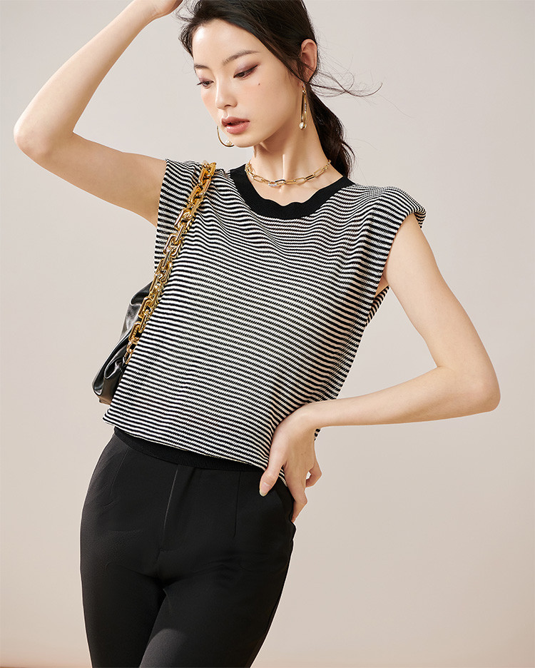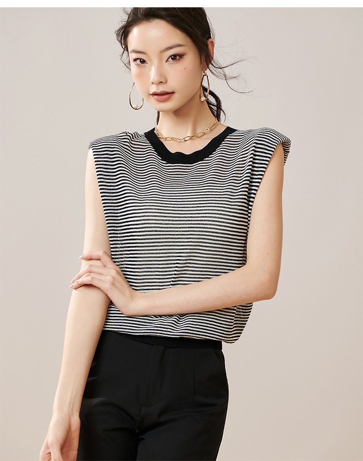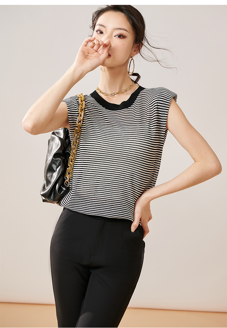 剩S/M/L/XL 芳外【条纹背心针织T】2024夏季新款女式针织衫