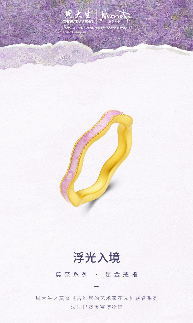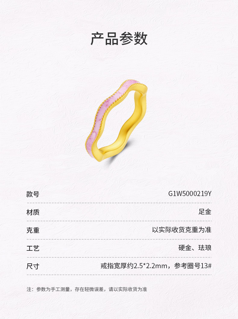 【无忧之夜同款】周大生X莫奈黄金戒指女足金硬金珐琅莫比乌斯指环送女友生日礼物