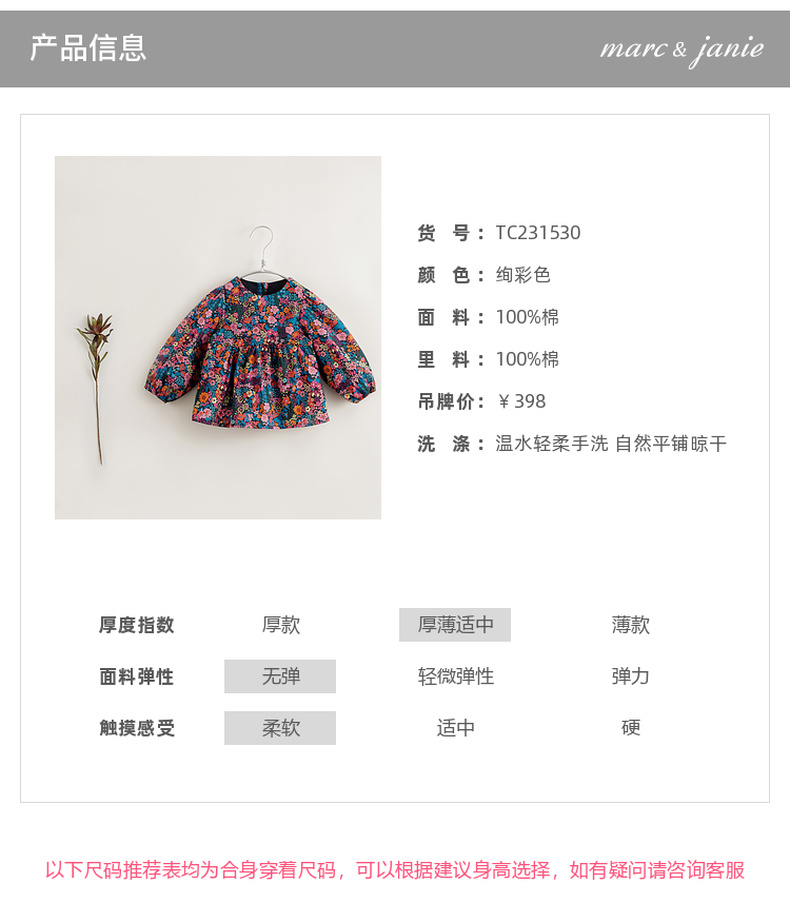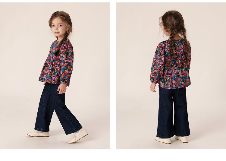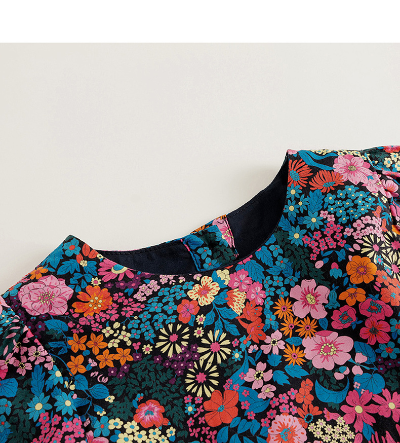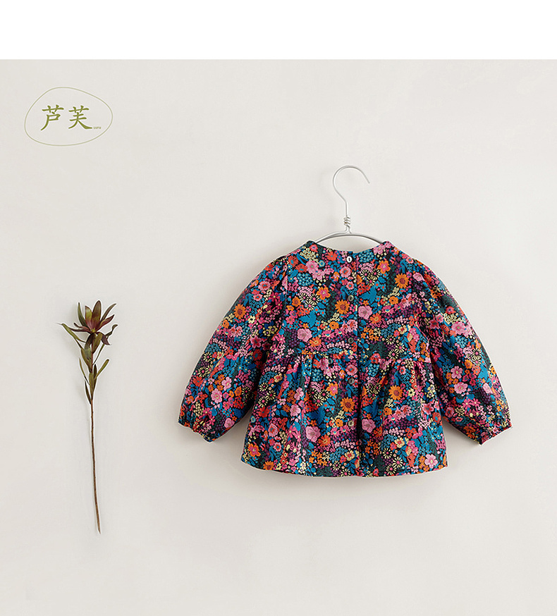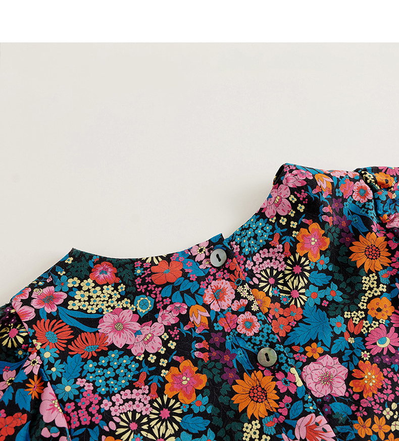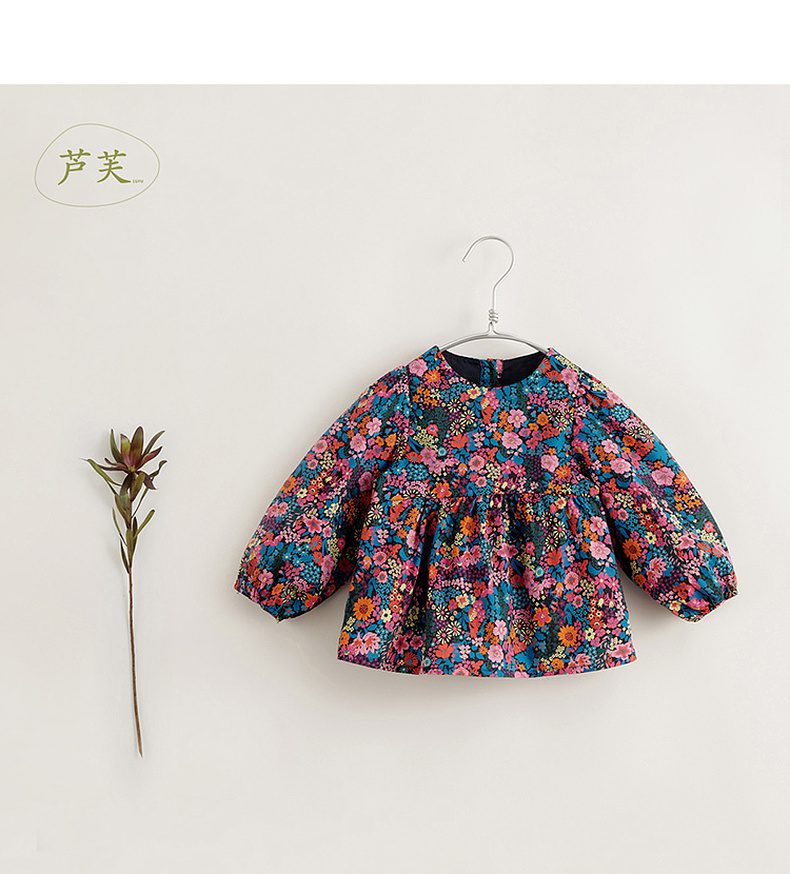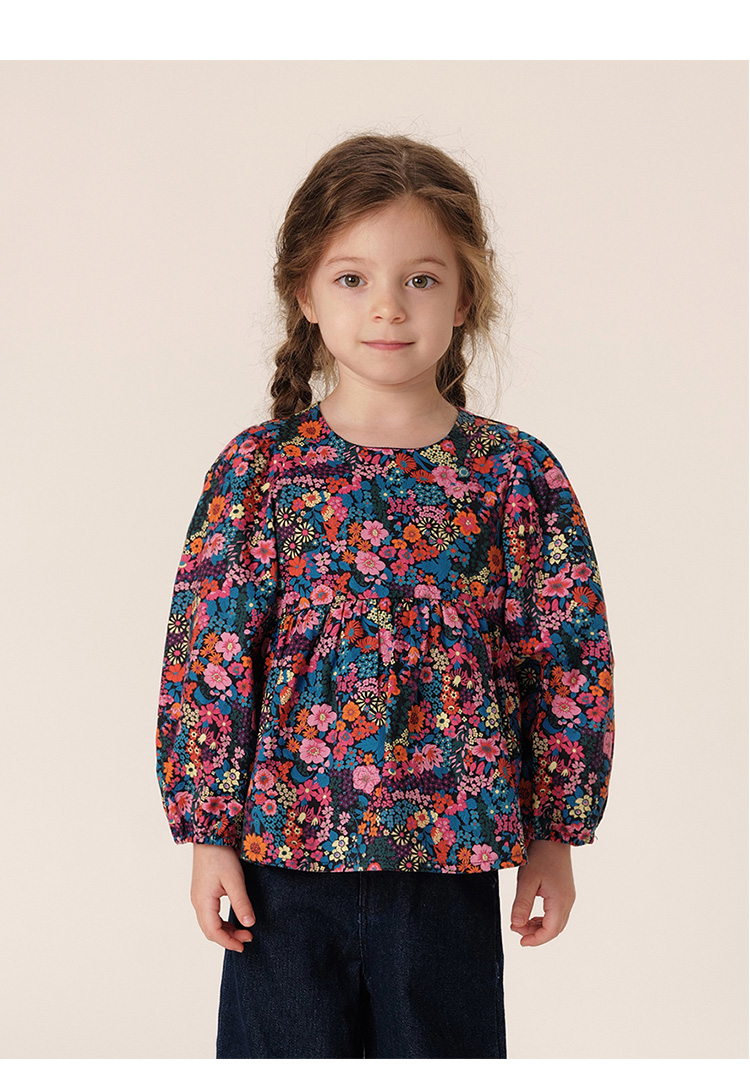 【马克珍妮 芦芙】秋装新款 女童绚烂碎花泡泡袖纯棉小衫231530