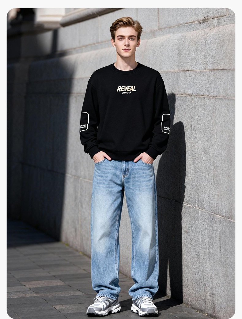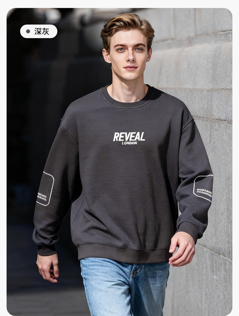 【100%棉】圣得西秋季青春潮流印花圆领套头纯棉卫衣2362978017