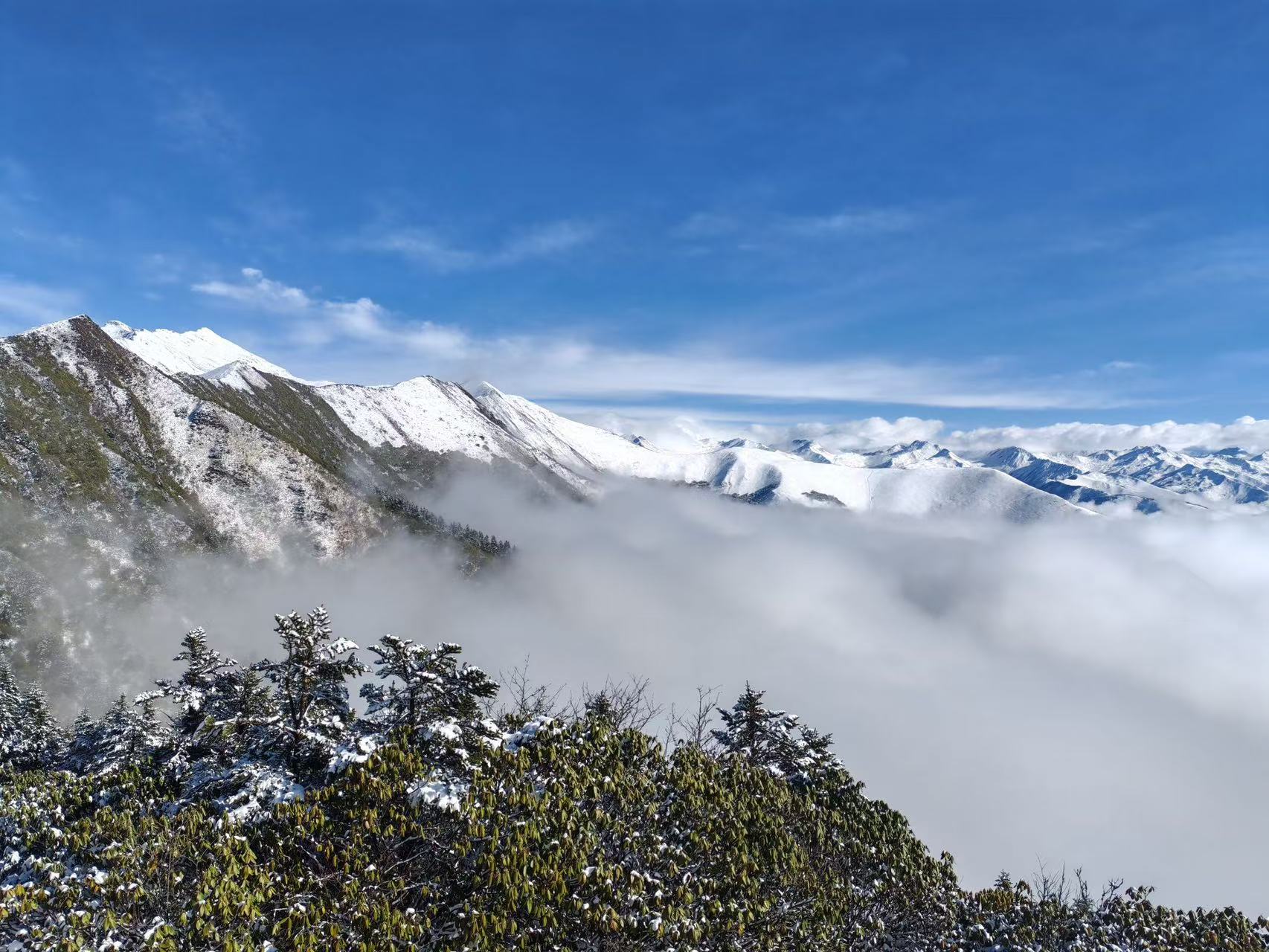 在海拔约3900米之巅上的观景台,视野开阔,大有"在宝兴登珠穆朗玛"之感,向北能够看到四姑娘山,南面是帕格拉神山,西面还有贡嘎群峰