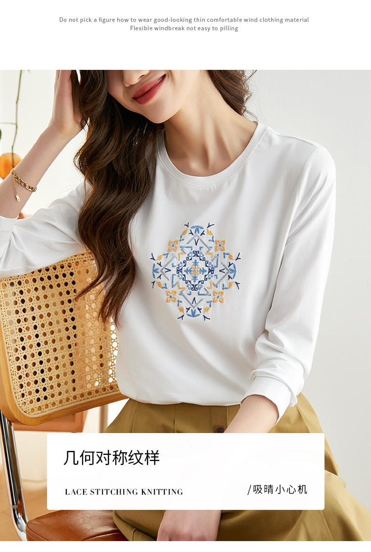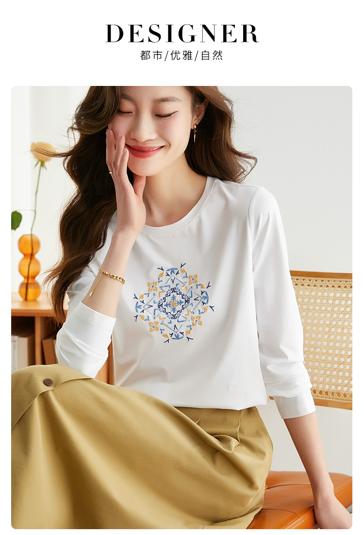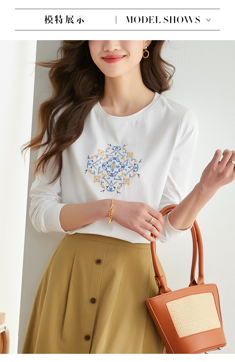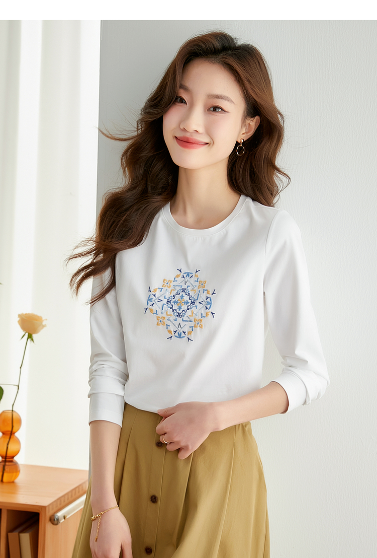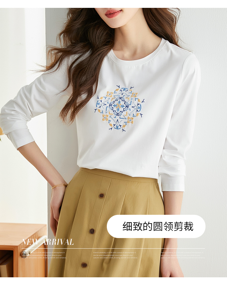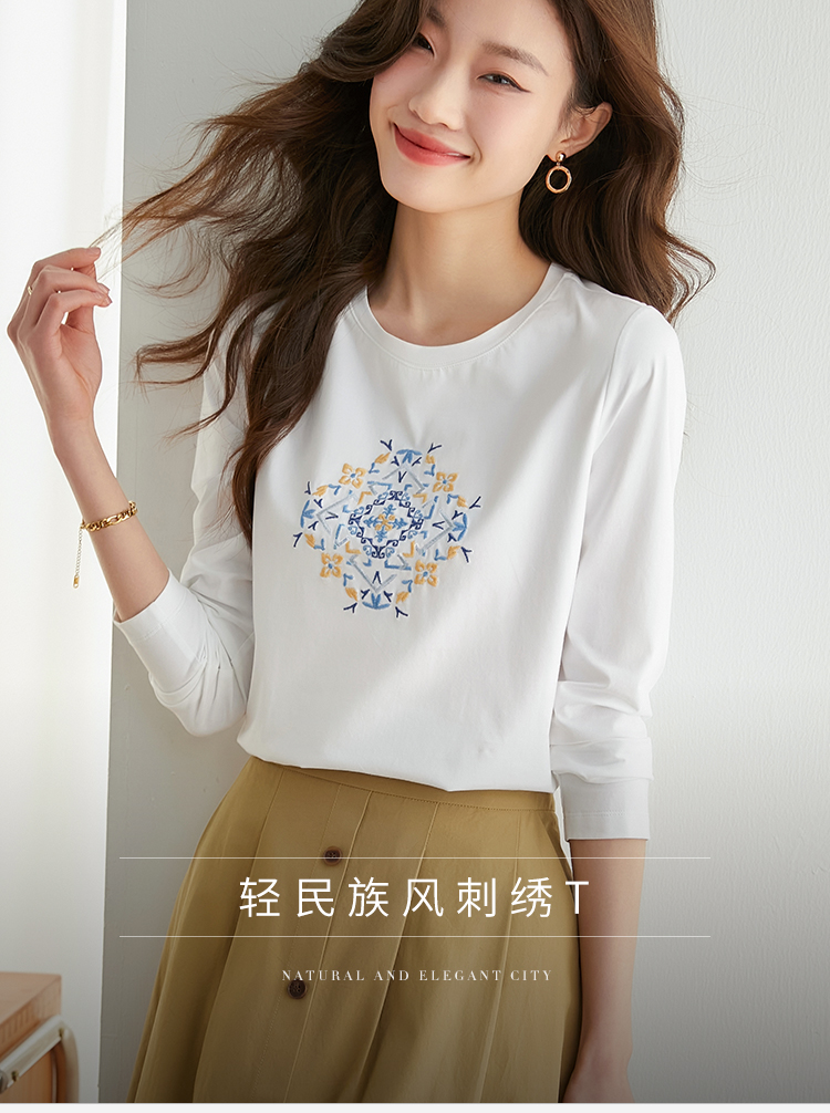 【专属特价】熙世界轻民族风复古刺绣T恤长袖2025秋季新款休闲圆领棉质上衣